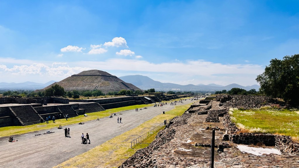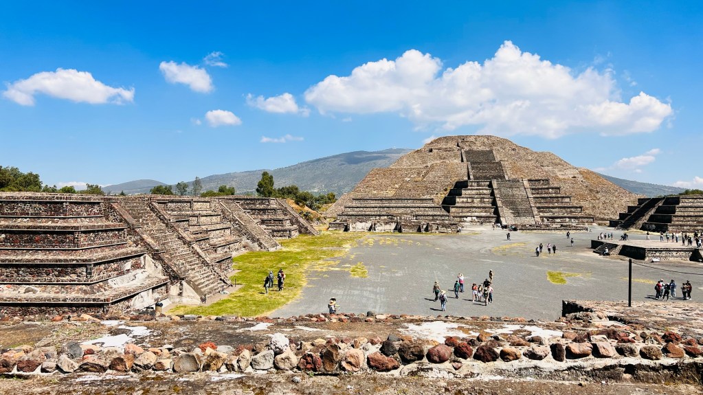 Aber egal, wir waren am Ziel. Nun hatten wir 1,5 Stunden Zeit, die doch sehr imposanten Pyramiden zu bewundern. Nach 30 Minuten war alles angeschaut. Da man nicht mehr machen kann als zwischen Sonnen- und Mondpyramide hin und her zulaufen und alle paar Meter ein Verkäufer abzuwimmeln, ist man doch schnell durch. Der Guide hatte zwar viel zu sagen aber keiner hat’s verstanden und auf die Pyramiden konnte man auch nicht hoch. Aber hey, wir waren da.