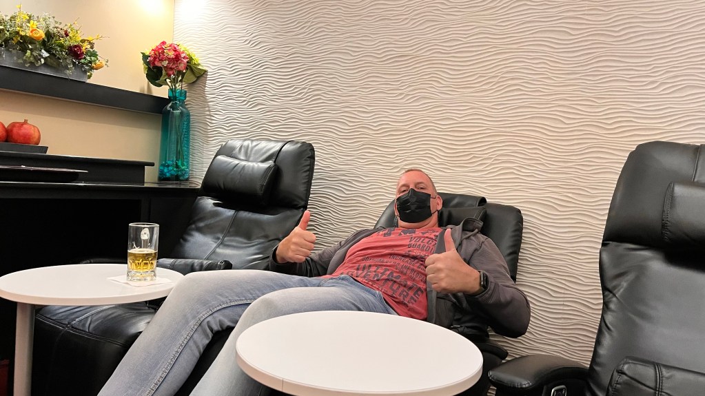 Schneller ging es dann bei der Sicherheitskontrolle. Da war die Warteschlange nur ein Bruchteil von der „normalen“ Warteschlange. So konnten wir noch die Vorteile der Business-Lounge genießen.