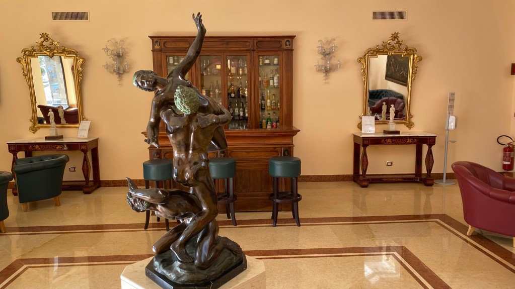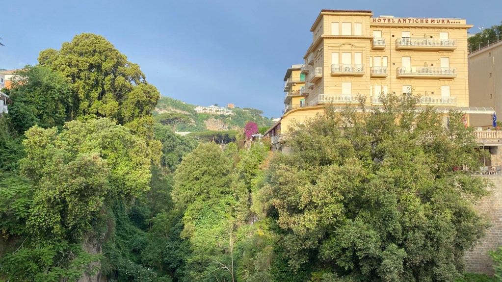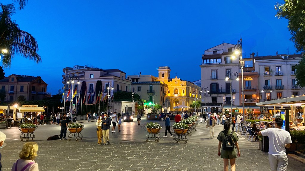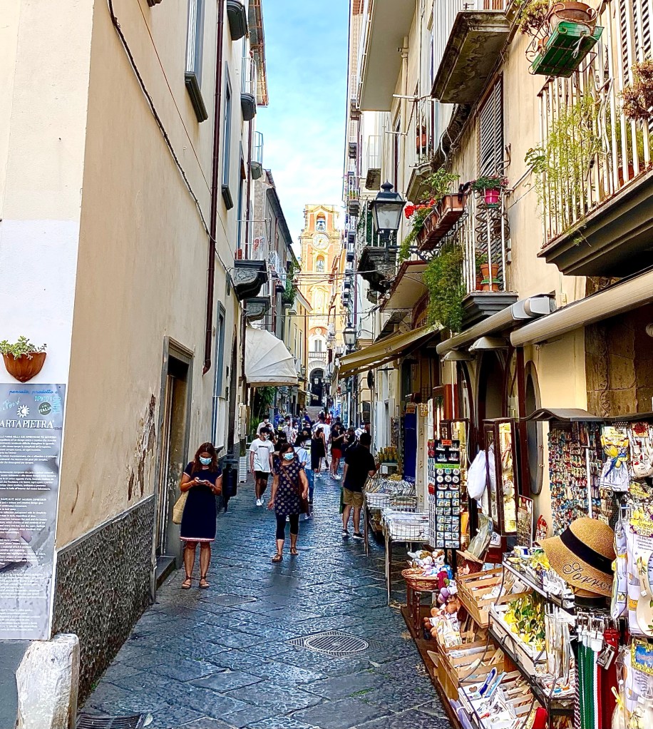 Die Stadt Sorrent oder auch Sorrento, ist der Tourihotspot überhaupt. Eigentlich. Die Gassen der Stadt sind gut besucht aber nicht voll. In den Restaurants und Bars sind die meisten Tische frei. In ganz Italien herrscht im Freien Maskenpflicht. Eventuell hält das auch einige Touristen ab. Angenehm ist es jedenfalls nicht, bei 30 Grad mit einer Maske rumzulaufen. Auch die Italienerm halten sich dran. Es wird auch stark kontrolliert.