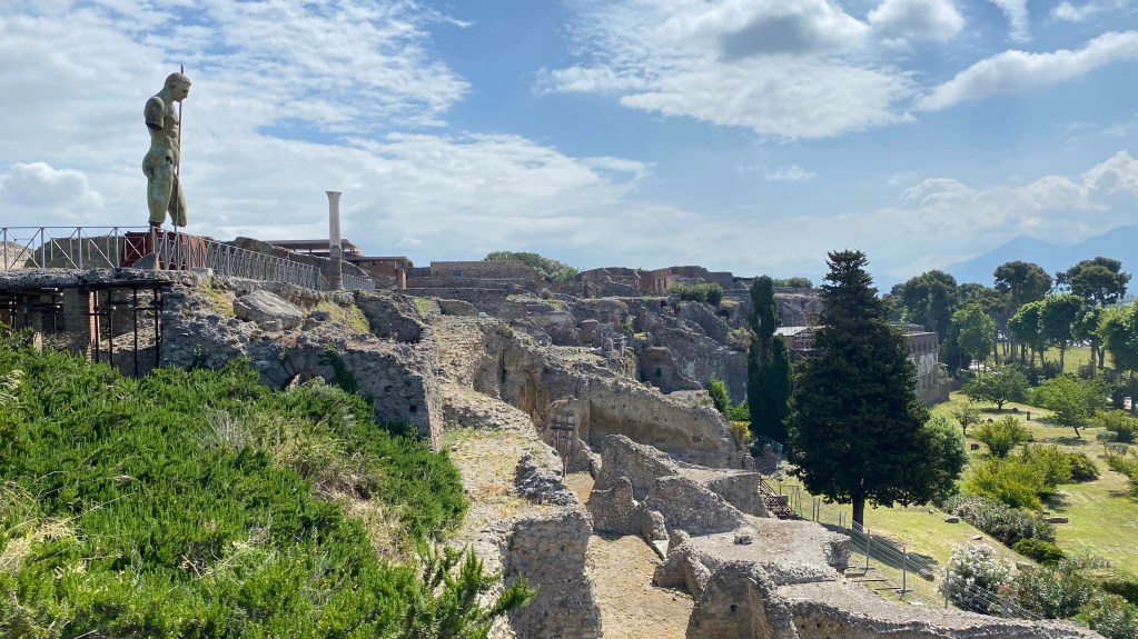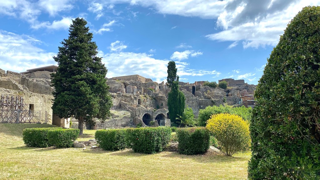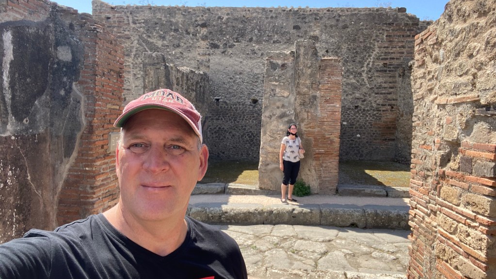 07.06.2021 Heute Morgen haben wir uns spontan entschieden nach Pompeji zu fahren. Was sich als total richtig erweisen sollte. Die Entscheidung viel, als wir Morgens wach wurden und den bedeckten Himmel sahen. Wir ziehen heute nach Positano, direkt an die Amalfiküste. Vorher wollten wir die Küstenstraße noch entlang fahren. Pompeji und Positano liegen aber entgegengesetzt. So haben wir zeitig ausgecheckt und sind nach Pompeji gefahren. Und plötzlich wurde der Himmel blau und wir hatten das schönste Wetter den ganzen Tag über. Aber genug gespoilert und zurück zum Thema. Wir wissen, das wir uns sowieso nicht jeden Stein angucken und nach 2 Stunden wieder am Ausgang sind. So war es auch. Dies ist aber auch darauf zurück zuführen, dass vieles abgesperrt war, dank dem blöden Virus. Wir waren aber auch fast alleine auf dem großen Gelände. So hatten wir nirgends Wartezeit.