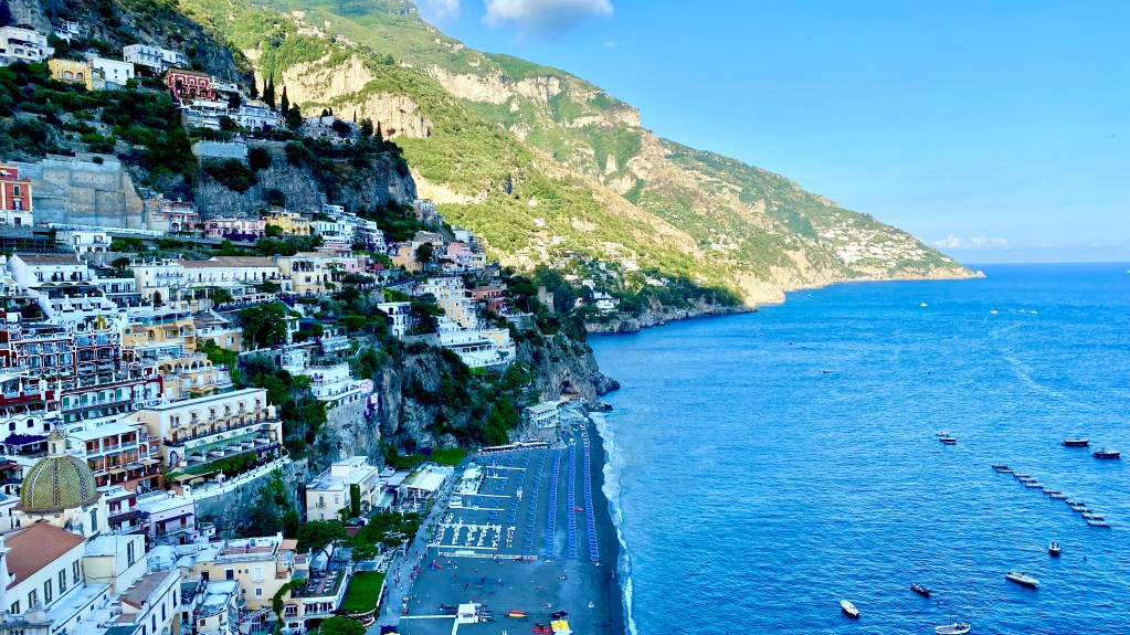 Von Positano aus haben wir uns ein Hotel fast am Strand gebucht. Der Parkplatz vor dem Hotel und eine Straße trennen uns vom Beach. Hier im Hotel Forte wollen wir ein paar Tage relaxen.