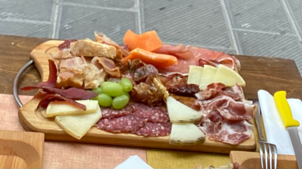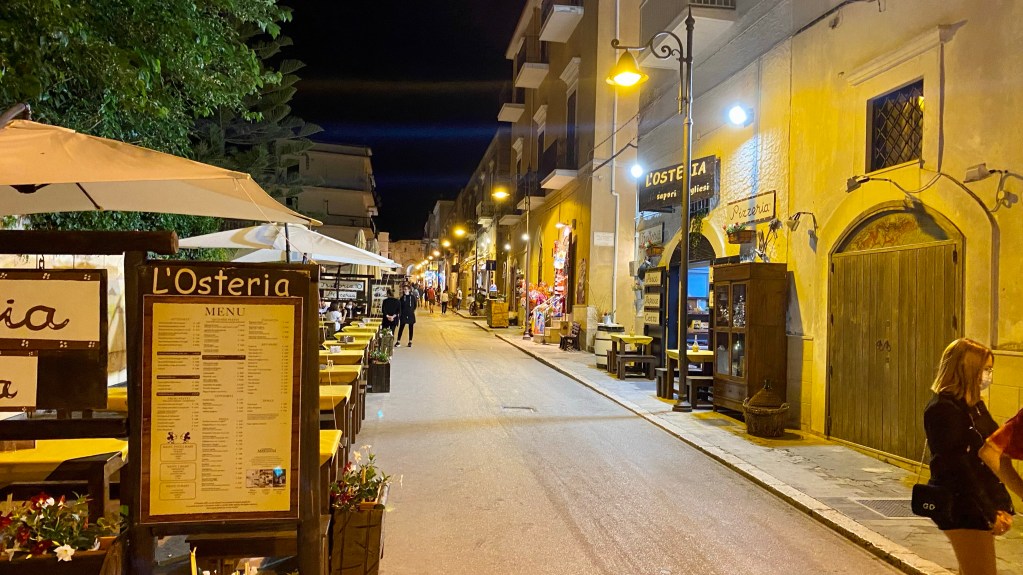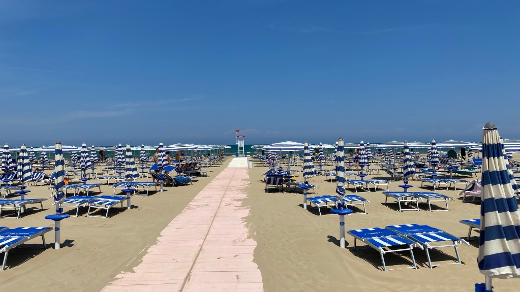Aber heute Abend geht es noch mal in die Altstadt. Noch mal lecker Essen und dann gemütlich ein Spritz trinken. Das Erstere hat geklappt. Aber eine gemütliche Stelle zum Abend ausklingen lassen haben wir nicht gefunden. Das Problem, heute ist Samstag. Und tausende Italiener strömen in die Stadt. Zu der Zeit, wenn wir mit dem Essen fertig sind, gehen die Italiener auf die Suche. So viele Menschen auf ein Haufen haben wir seit über einem Jahr nicht mehr gesehen. Außerdem hält sich hier kaum einer an die Maskenpflicht. Bei so engen Kontakt wie die Italiener hier zueinander haben, ist es verwunderlich , das die Infektionen so weit runter gegangen sind. Wir haben aber auch gehört, das sehr viele Italiener geimpft sind. Soweit so schlecht, es fand sich nichts gemütliches. So sind wir zurück ins Hotel und ich fand Zeit, diese Zeilen zu schreiben. Wir haben gelesen, das hier im Juli und August die Hochsaison seien soll. Der normale ruhige Deutsche sollte dann nicht hier sein.