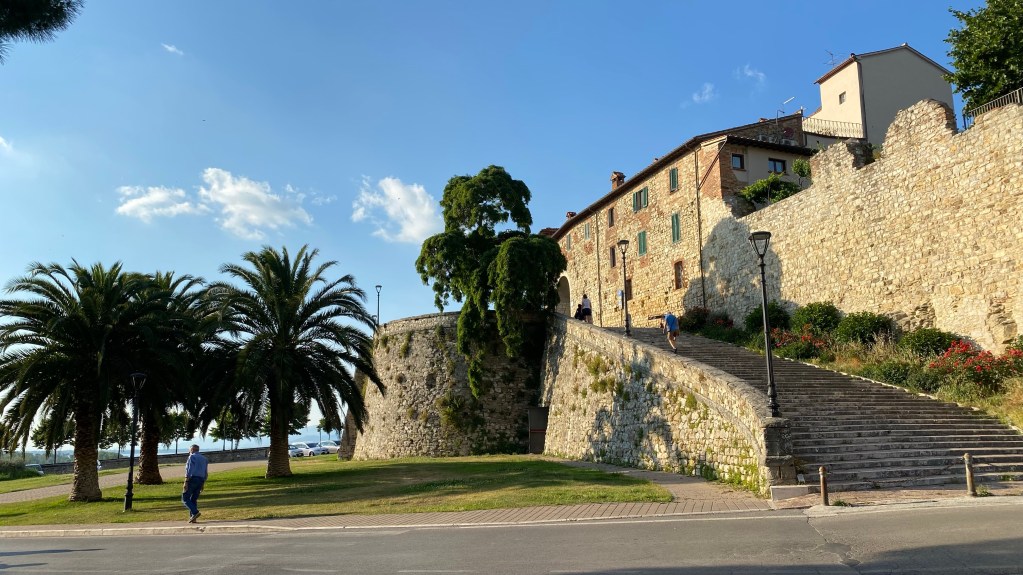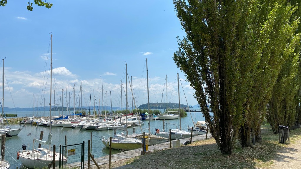 13.06.2021 Wir sind in Castiglione del Lago am Trasimenischen See. Das ist in der Nähe von Florenz. Hier ist es sehr idyllisch. (Langweilig) Irgendwas mus aber hier sein, sonst wäre es im Reiseführer nicht erwähnt worden. Was das ist, müssen wir aber noch rausfinden. Das Mittagessen viel dieses mal auch nicht sehr kulinarisch aus. Alle Restaurants hatten zu oder waren voll. Jedenfalls hatte der Lidl Sonntags auf.