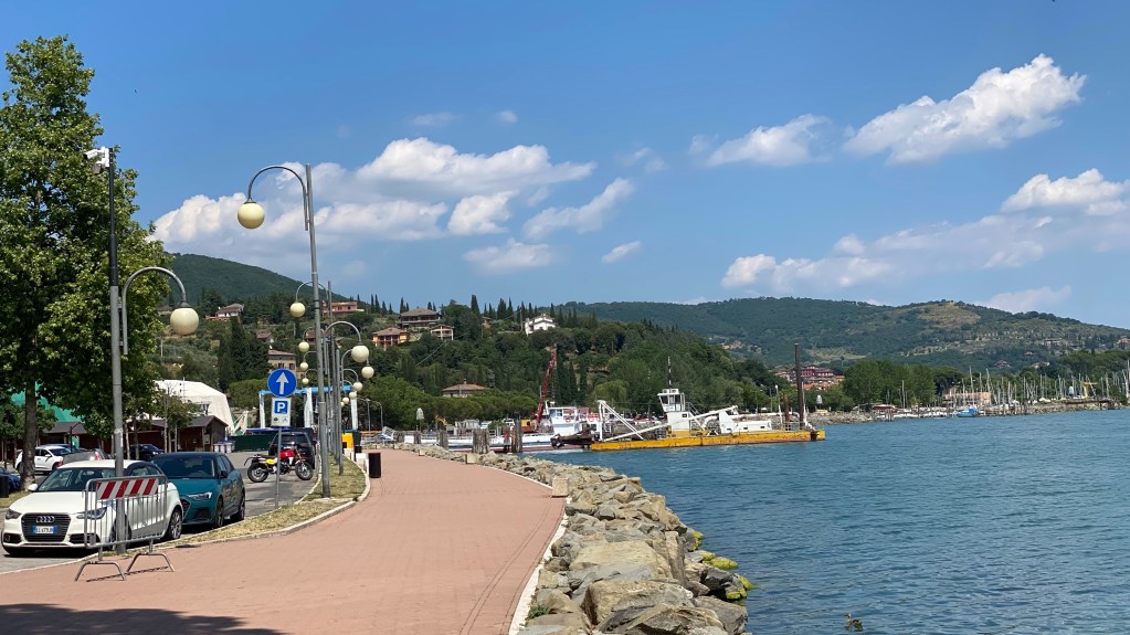 Für uns war die Nähe zu den toskanischen Landschaften ausschlaggebend. Für einen Tag nur auf einen Bauernhof ist auch nichts. Weil man dann abends so beschränkt ist. So sind wir heute Morgen in die Toskana gefahren und am Nachmittag um den See. Hier folgt auch später ein Video.