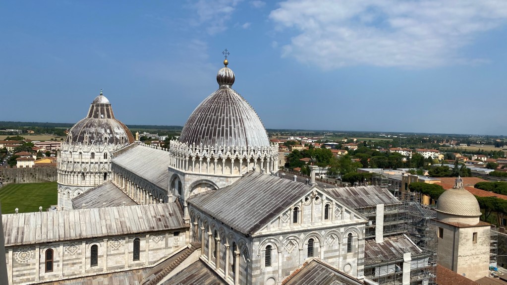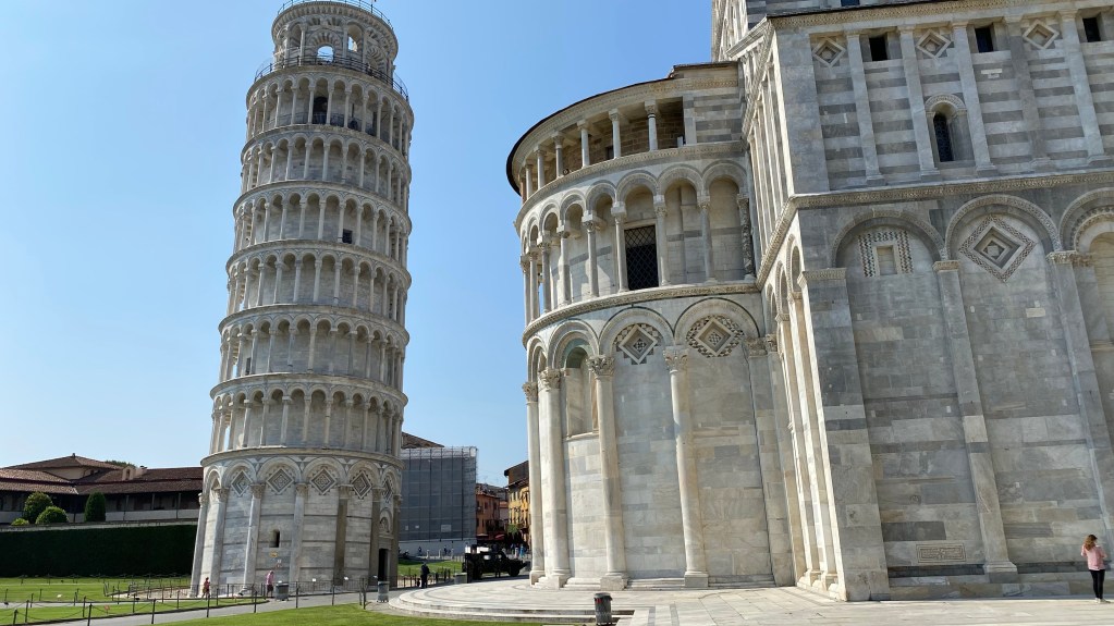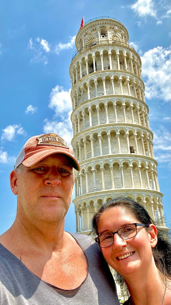 15.06.2021 Um 7 Uhr sind wir los vom Hotel. Ohne Frühstück. Die Herbergscheffin konnte das nicht verstehen. Wir wollen aber zeitig in Pisa sein, noch bevor die Touristenmassen das Areal stürmen. Das Ticket für den Turm wollten wir nicht vorab online kaufen, da diese zeitliche gebunden sind. Trotz Stau auf der Autobahn waren wir um 10 Uhr auf dem Parkplatz vor dem Gelände. Den Parkplatz Pisa Tower Parking habe ich über Google Maps gefunden und ins Navi eingegeben. Hat super funktioniert und 1,80 €/h ist ein fairer Preis. Wir sind auch zielstrebig zum Ticketschaltet gegangen und haben so für 20€ p. P. noch für 10.30 Uhr den Zugang zum Turm ergattert. Hierzu später mehr im Video