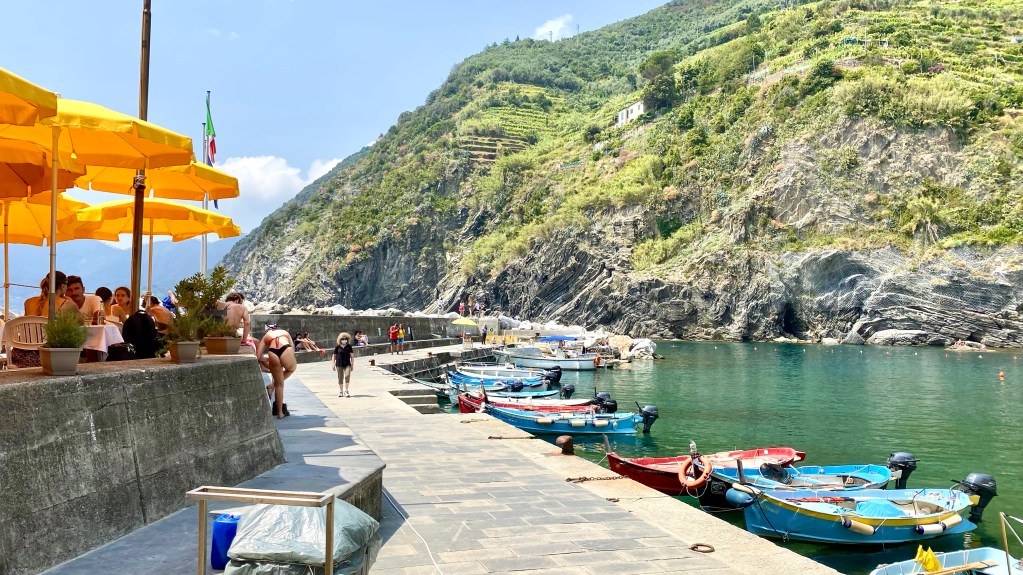 Das letzte Dorf vor unserer Rückkehr ist Vernazza. Hier waren wir schon relativ kaputt und es wiederholt sich auch alles. Die Häuser ähneln sich irgendwie und die Läden bieten die gleichen Produkte an. Aber vollständigkeitshalber haben wir uns auch hier umgesehen. Und nett sieht‘s schon aus.