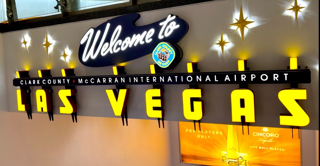 Das war die schnellste Immigration ever. Wir kamen fast als erstes aus den Flugzeug raus und standen somit relativ schnell vor dem Beamten. Bekky ist als erstes hin. Foto machen und Fingerabdrücke scannen. Dann war ich dran. Foto machen und Tschüss. Das war’s. Ich konnte einfach durch. Wahrscheinlich waren wir noch im System gespeichert und alle unsere Angaben vor Abflug waren ausreichend. Anschließend die Koffer vom Band genommen und 50 Meter weiter wieder auf ein anderes Band gelegt. Die Skytrain war auch schnell gefunden und so waren wir überpünktlich am Gate zu unserem Weiterflug nach Vegas.