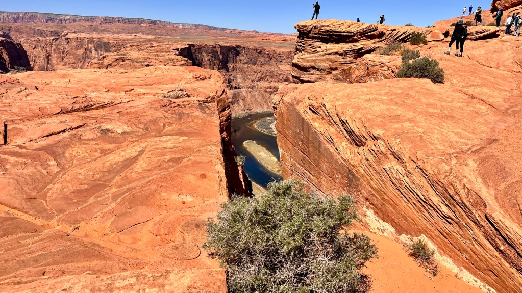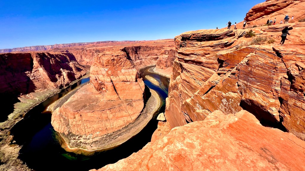 Heute konnten wir einen lang gehegten Wunsch von der Bucket List streichen. Den Horseshoe Bend. Von Flagstaff nach Page sind es 200 Kilometer. Dort in der Nähe macht der Colorado River seine berühmte Biegung. Viele gehypte Reiseziele können ja enttäuschend sein wenn man da ist. Der Horseshoe Bend ist aber wirklich nur WOW.