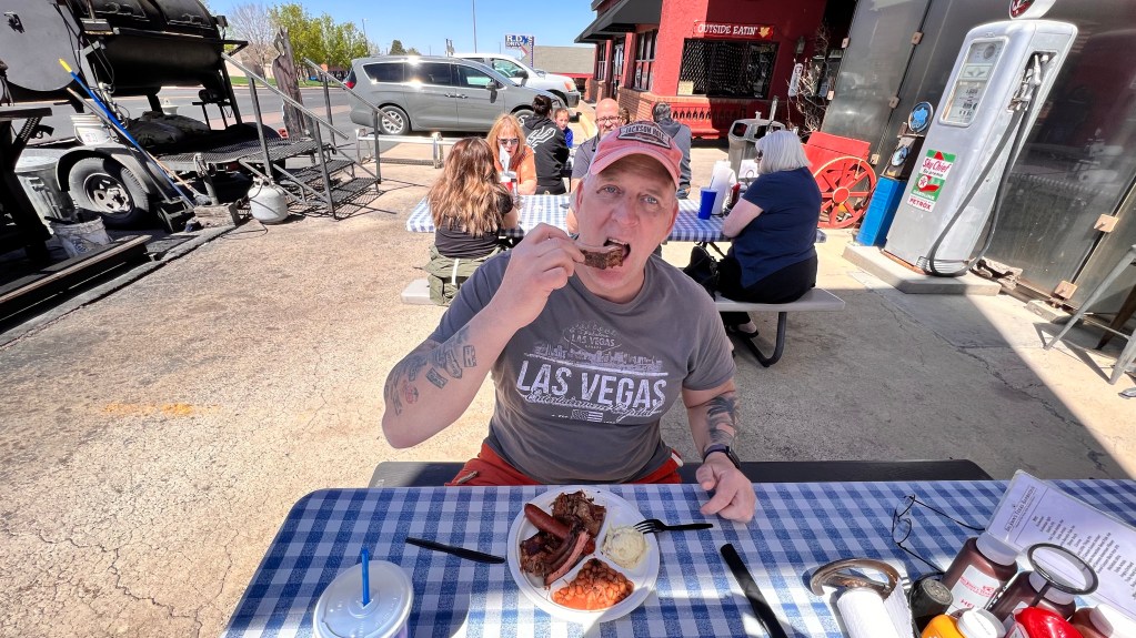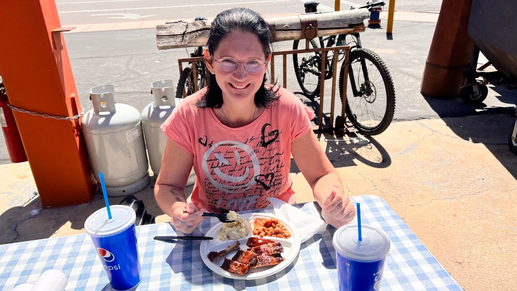 Die beste Uhrzeit um den Horseshoe Bend anzuschauen ist der späte Vormittag. Das gab uns die Möglichkeit zum Mittagessen noch eine Wunsch von der Liste zu streichen. In dem Ort Page gibt es ein BBQ-Restaurant das sehr bekannt ist. Vor der Tür gart in 2 Öfen das Fleisch bis es so zart ist, das es vom Knochen fällt. Dazu noch eine selbst gemachte BBQ-Soße. Das mussten wir probieren.