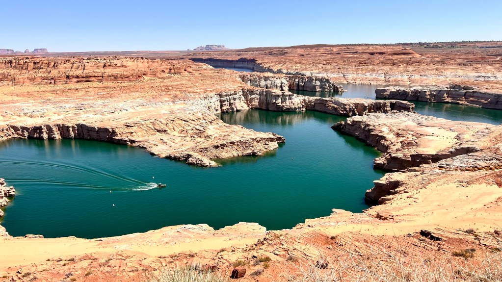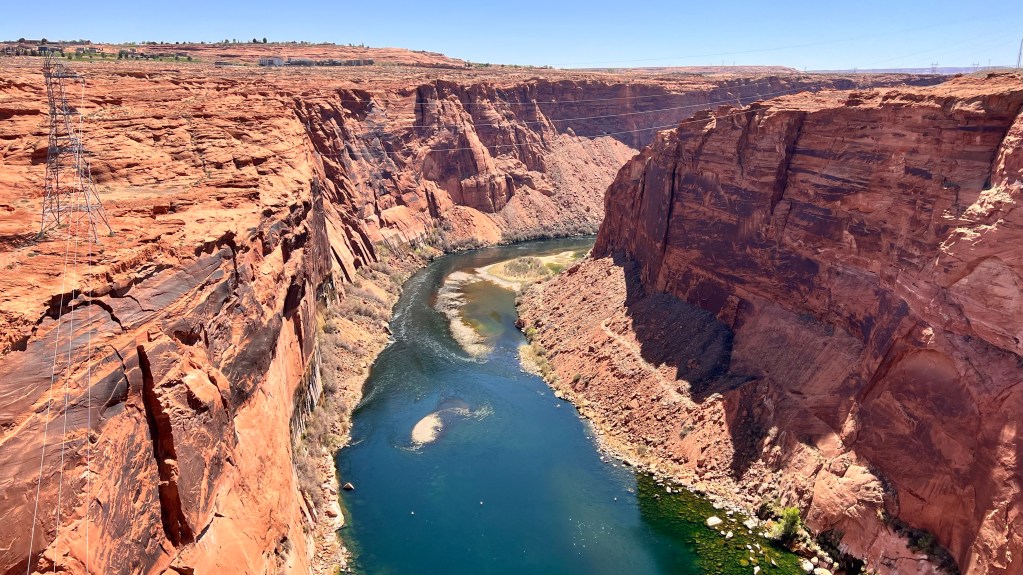 Da wir erst um 15 Uhr einchecken können, blieb noch Zeit, den wenige Kilometer entfernten Glen Canyon Damm und ein Stück des kaum Wasser führenden Lake Powell anzuschauen.