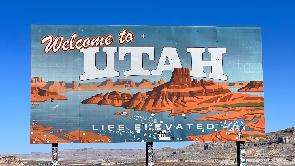 Auf dem 120 Kilometer langen Weg von Page nach Kanab überquert man die Grenze von Arizona zu Utah und man bekommt eine Stunde abgezogen.