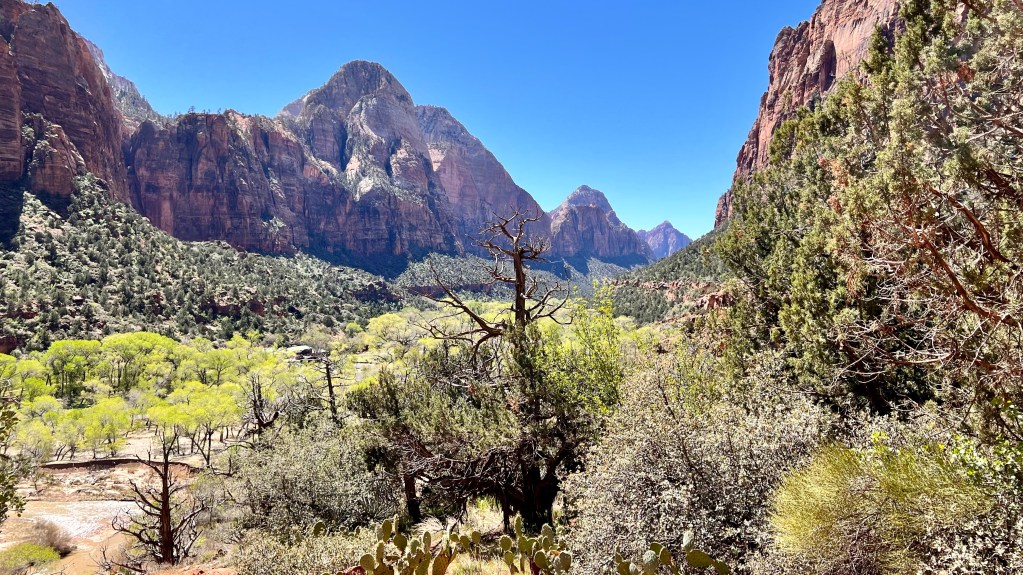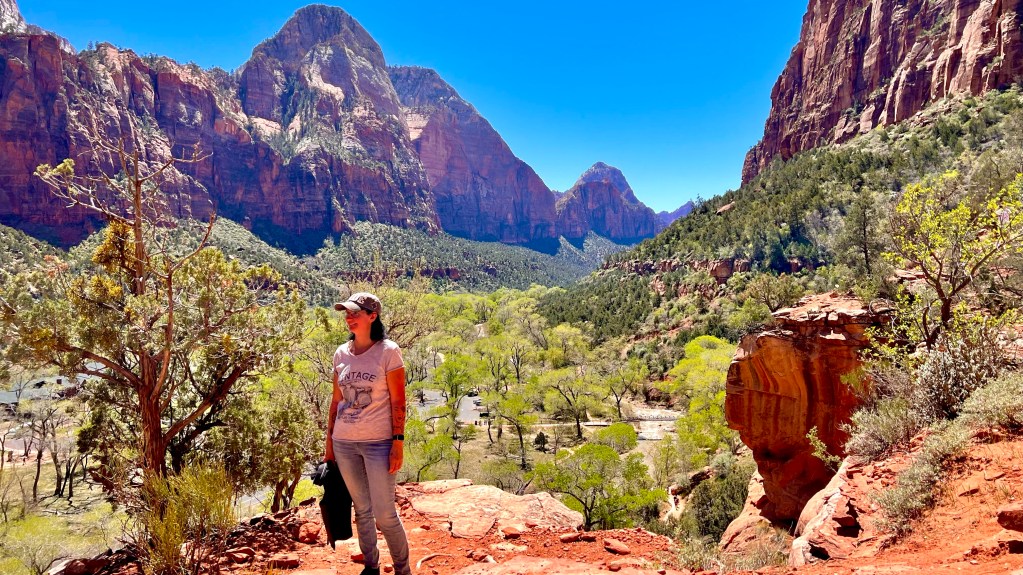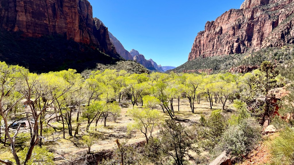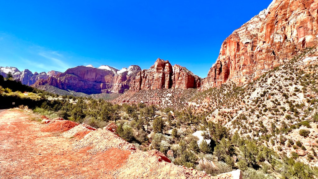 Ein landschaftliches Highlight folgt dem anderen. Heute waren wir im vielleicht schönsten Nationalpark der USA, dem Zion NP. Vor 4 Jahren waren wir schon einmal hier, sind aber aus Zeitmangel nur durchgefahren um zum Bryce-Canyon zu kommen. Damals haben wir gesagt, dass wir zurückkommen müssen. Und heute war der Tag. Von Kanab sind es 70 Kilometer und diese führen teilweise bereits durch den Nationalpark. Wer keinen Annual-Pass hat muss auf dieser Strecke bereits den Eintritt von 35$ zahlen. Man muss auch zeitig am Visitor-Center sein um noch einen Parkplatz zu bekommen. Um 9 Uhr werden die Parkplätze schon knapp. Vom Visitor-Center fahren dann alle 2-3 Minuten kostenlose Busse zu 9 Stellen im Tal. Von dort aus führen dann mehr oder weniger schwere Wanderwege ab. Wir haben uns für eine mittelschweren Weg entschieden