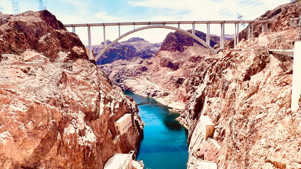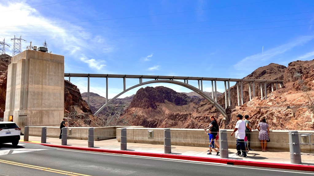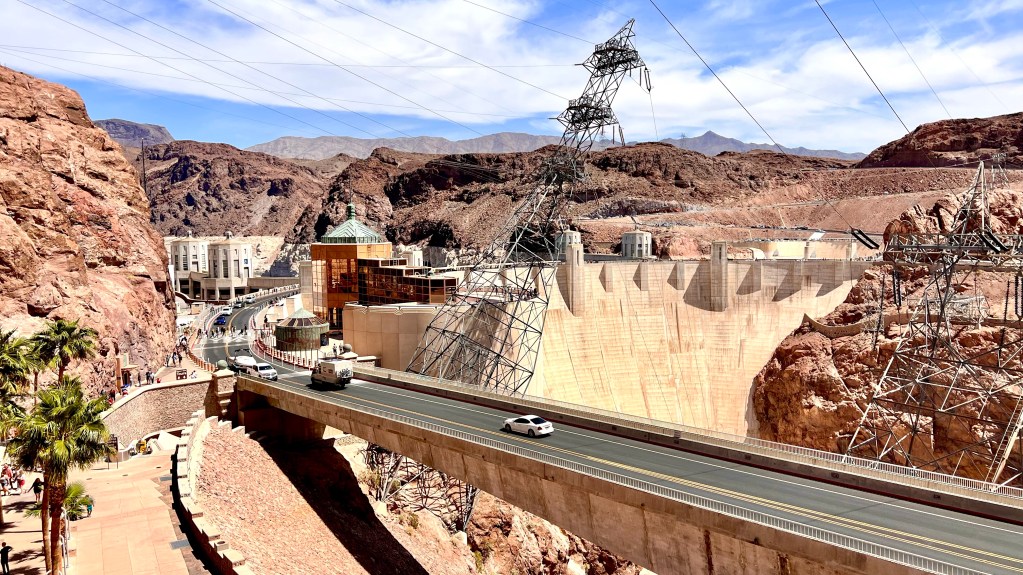 Wir sind einen Tag zu früh fertig mit unserem Roadtrip. Die letzten 4 Tage sind für Las Vegas reserviert. Aber was macht man mit einem Tag mitten im Nirgendwo? Eigentlich ist alles, was wir noch angucken können zu weit weg. Bleibt nur einen Tag früher nach Vegas zu fahren. Nach Las Vegas sind es von Kanab 3,5 Stunden fahrt. Eine Stunde bekommen wir aber wieder gutgeschrieben. So werden wir definitiv zu früh zum einchecken in Vegas sein. Also haben wir einen Umweg über den Hoover Dam gemacht. Das hat uns die nötige Zeit bis zum einchecken verschafft.