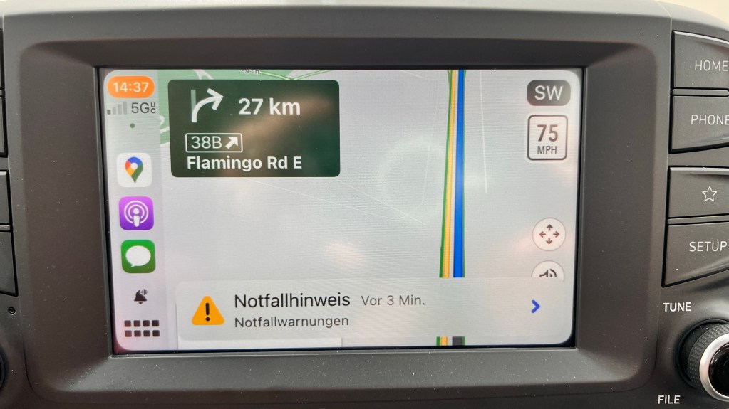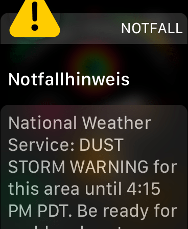 Auf dem Rückweg nach Las Vegas wurde es auf der Interstate recht windig. Auch die Luft wurde trübe. Plötzlich kam auf dem Bildschirm eine Meldung.