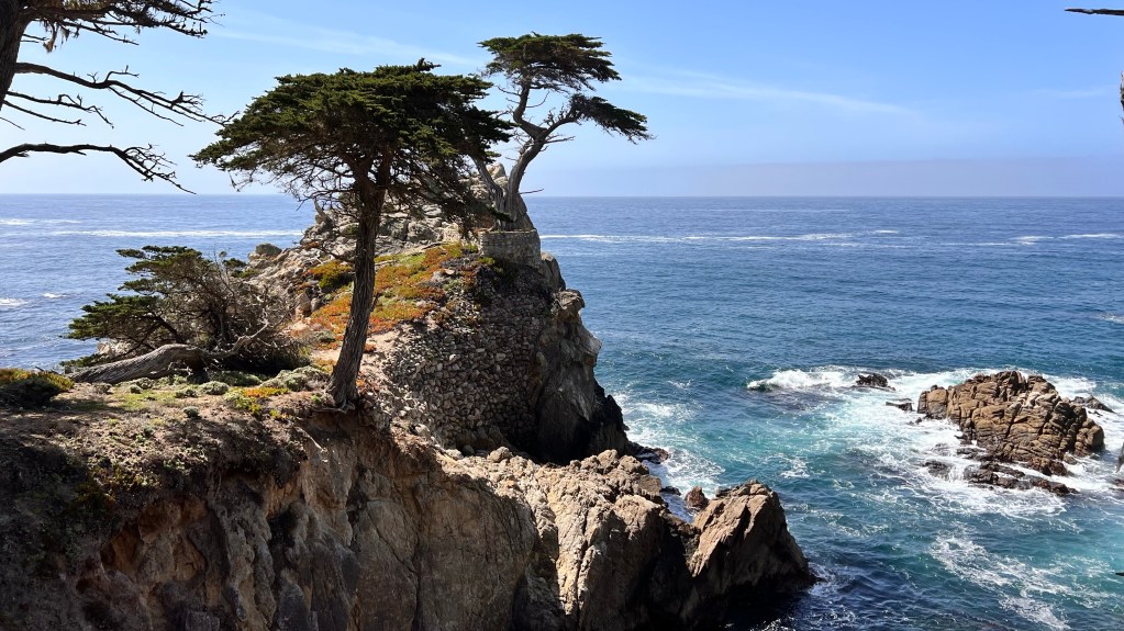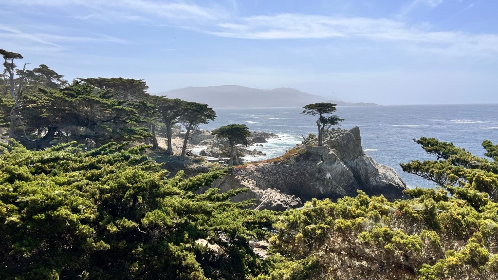 Planänderung. Eigentlich wollten wir heute den Sequoia Nationalpark weiter erkunden. Wir haben in Tulare, einen kleinen Ort circa 70 km vom Park entfernt, übernachtet. Aber, trotz der Faszination über die riesigen Bäume, haben wir uns entschlossen, gleich unser nächstes Ziel anzusteuern. Monterey. So haben wir mehr Zeit in dem bekannten Ort südlich von San Francisco. Wir sollten es nicht bereuen. Wir sind kurz vor 12 Uhr angekommen und sind gleich auf den „17 Mile Drive“ gefahren. Diese Straße führt um die Halbinsel und ist absolut sehenswert obwohl es eine bewachte Gemeinde der Reichen mit Golfplatz ist und die Einfahrt 10€ kostet.