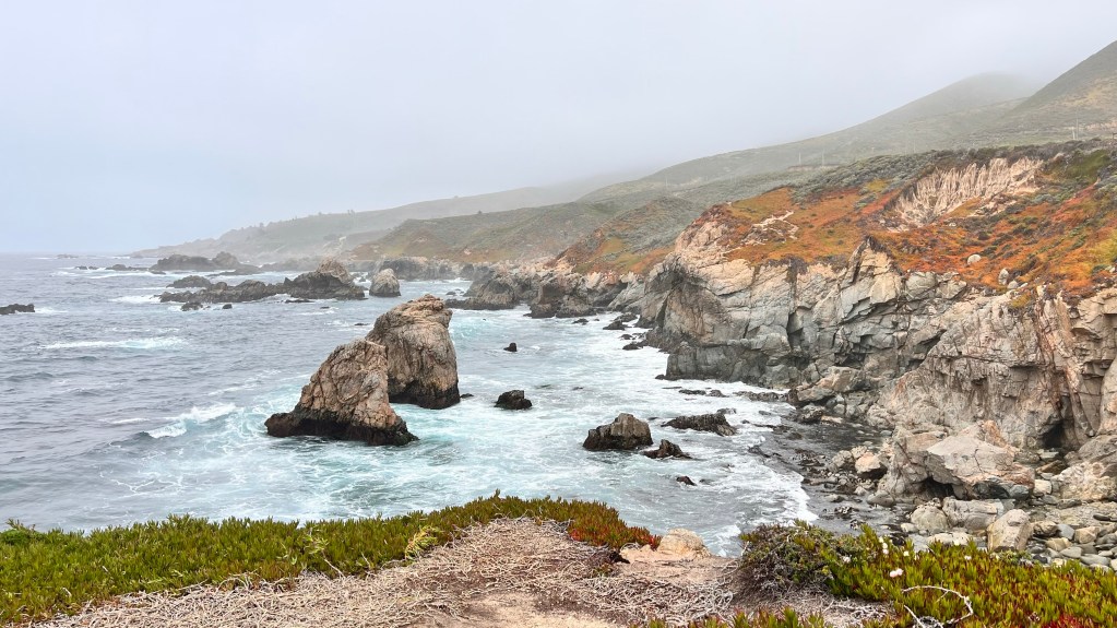 Das Wetter hat leider nicht den Wetterbericht angeschaut. Sonst hätte es gewusst, dass heute die Sonne scheinen soll. Gerade heute, als wir den Highway 1 runter fahren wollen, macht das Wetter diesen dummen Fehler. So fuhren wir den besagten Highway von Monterey nach Morro Bay ohne Sonnenschein entlang.