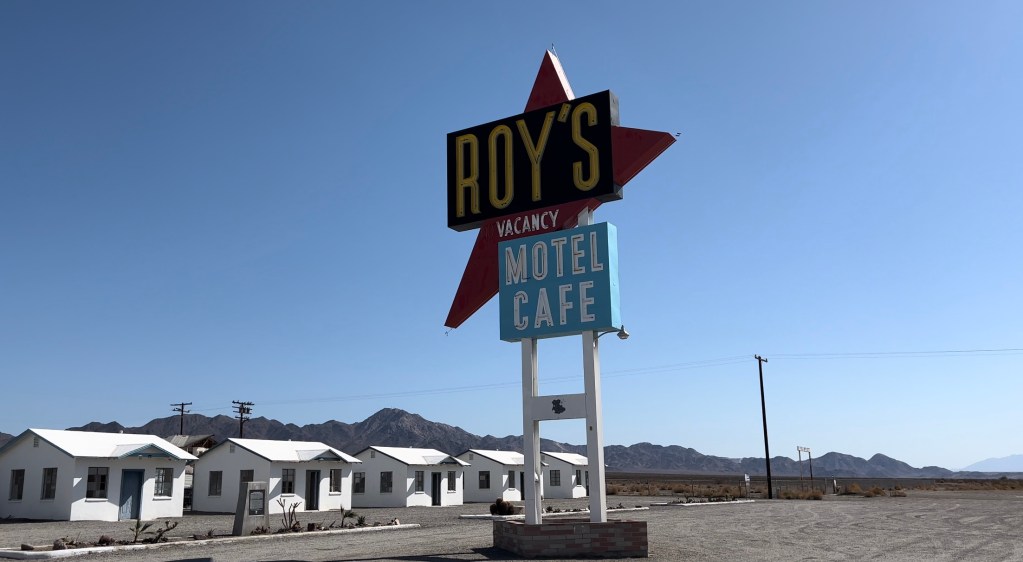 Obwohl es ab heute nicht mehr so lange Strecken zu fahren gibt, sind wir zeitig los. Auf der Route 66 kann man nicht so schnell fahren und es gibt mehr zu sehen als auf dem Highway. Unser erstes Ziel ist Amboy. Es ist eigentlich nur eine Tankstelle und ein paar Bungalows im Nirgendwo aber dieses ist relativ bekannt. Früher, als die Route 66 noch eine vielbefahrene Straße war, war die Tankstelle ein wichtiger Stopp. Auch Filme und Musikvideos wurden hier gedreht.