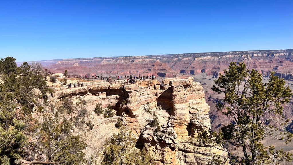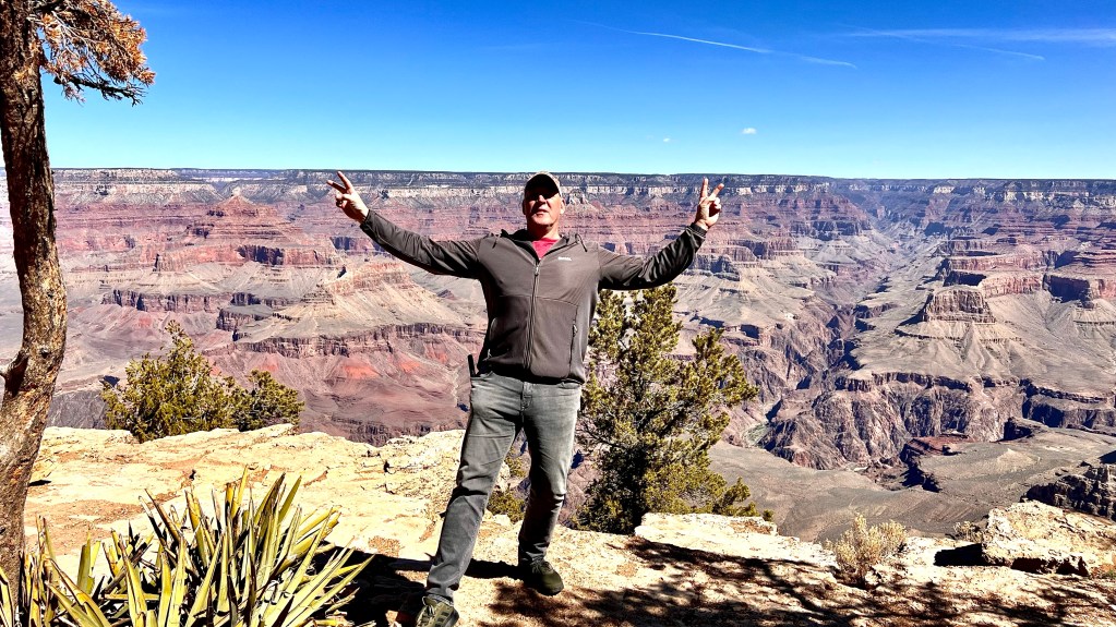 Wir waren vor 5 Jahren das erste mal am Grand Canyon. Und wenn man schon einmal in der Nähe ist, kann man auch noch einmal hinfahren. In der Nähe heißt hier im Westen der USA 100 Kilometer. So sind wir auf den Weg von Seligman nach Flagstaff, was auch circa 100 Kilometer sind, nach links zum Grand Canyon abgebogen. Es hat sich aber nicht viel verändert. Der sieht immer noch so aus wie damals