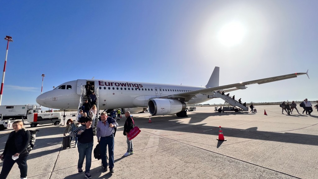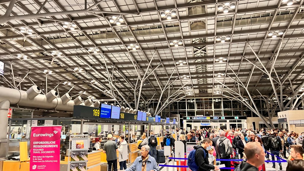 Wir waren kurz vor dem Wecker wach, obwohl die Betten im Wyndham ganz bequem waren. Der Wecker war auf 3 Uhr gestellt. Um 4 Uhr wollen wir am Flughafen sein. Das müsste zu schaffen sein. Sind ja nur 200 Meter. Gut, dass wir gestern Abend unser Gepäck aufgegeben haben. Die Warteschlange war größer, als die mitten in der Ferienzeit, am Frankfurter Flughafen. Wir haben „nur“ eine Stunde durch die Sicherheitskontrolle gebraucht. Aber was nützt das, wenn andere Passagiere nicht so vorausschauend Handeln? Der Flieger nach Kavala sollte um 6 Uhr starten. Um diese Uhrzeit kam die Durchsage, das noch 35 Passagiere in der Kontrolle sind und wir warten müssen.