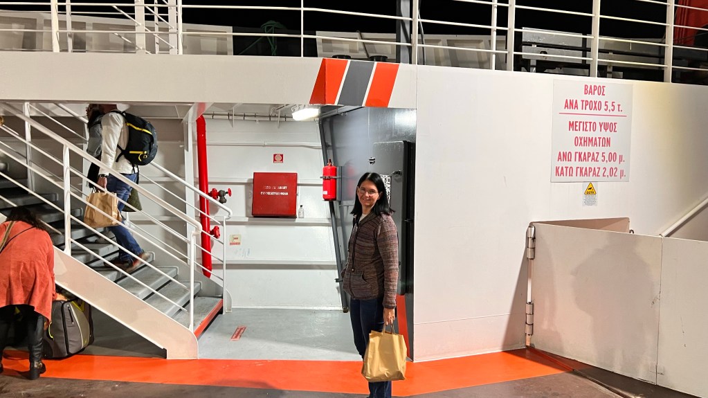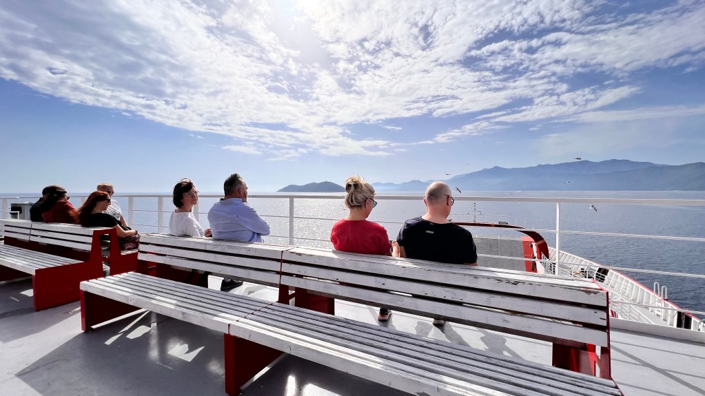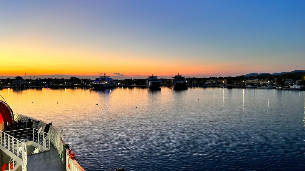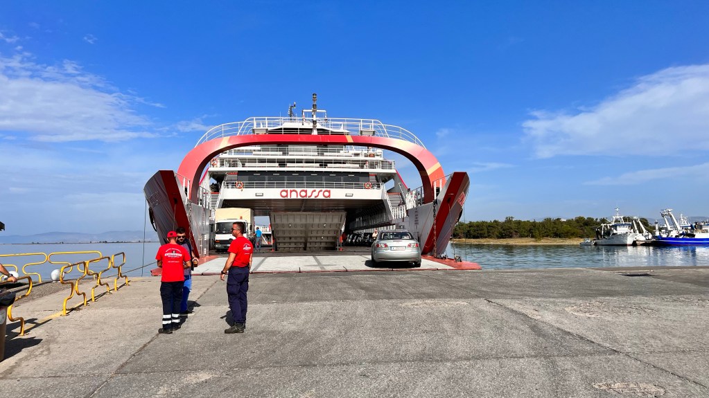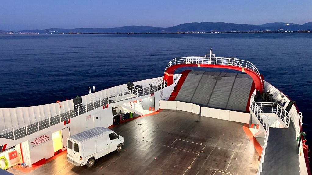 Wir wissen nicht warum aber wir sollten nicht in den Bus steigen, der uns zum Hafen bringt. Wir und ein paar andere Touris wurden in Taxen gesetzt. Im Bus wäre genug Platz und der Weg ist der Selbe. Wir waren nur 10 Minuten früher an der Fähre nach Thassos.
