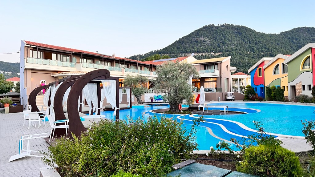 Im Süden der Insel befindet sich eine „größere“ Stadt Namens Potos. Dort ist auch ein touristisches Zentrum. Laut Aussage der Reiseleitung ist dort mehr offen und die Stadt soll gemütliche Gassen zum schlendern haben. Wir können beides nicht bestätigen. Uns hat der Ort nicht gefallen. Auch ist der Strand bei uns am Hotel bedeutend besser. Beim buchen kam für uns damals hier der Golden Beach in Frage oder der Ort Potos. Gut das wir uns so entschieden haben.