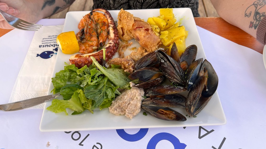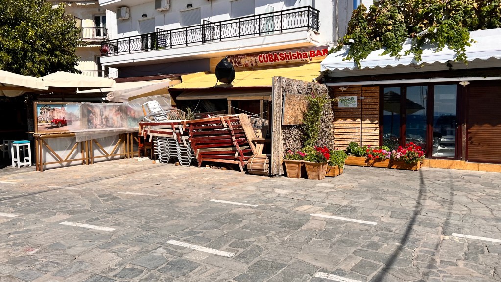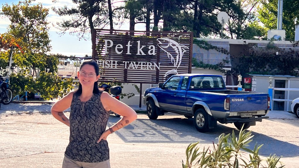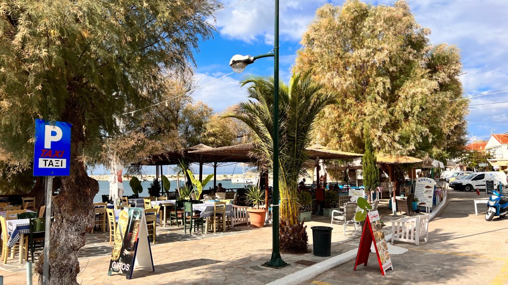 Eine Sache hätten wir gerne bevor wir das hier gebucht haben gewusst. Ab Oktober schließen die ihre Insel hier zu. Bis auf eine Handvoll Hotels ist fast alles geschlossen. Auch Lebensmittelläden. 99% der Infrastruktur ist zu. Wir haben extra das Hotel nur mit Frühstück gebucht, da wir Abends lieber in Tavernen essen gehen. Nur es gibt fast keine. Die letzte offene Taverne hier am Strand hatte heute ihren letzten Abend. Alle anderen Gäste im Hotel haben All Inclusive oder Halbpension gebucht. Auf der anderen Seite der Insel soll es noch ein paar offene Restaurants geben. Wir brauchen ein Auto.