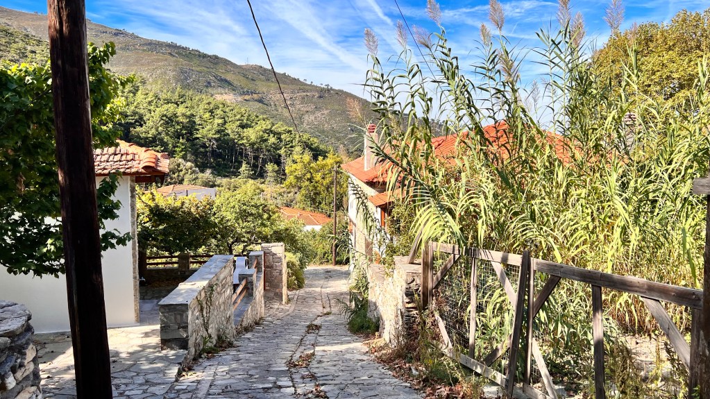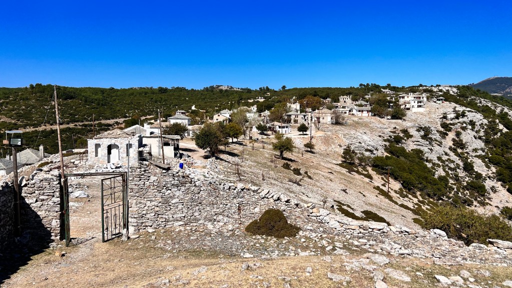 Da in der Nähe noch ein Bergdorf war, haben wir dort noch angehalten. Schnuckelig war es ja, aber warum lebt man dort? Wir kamen voll ins schnaufen, als wir durch das Dorf Megalos Prinos gegangen sind. Wie bekommt man da seine Kiste Bier hoch?