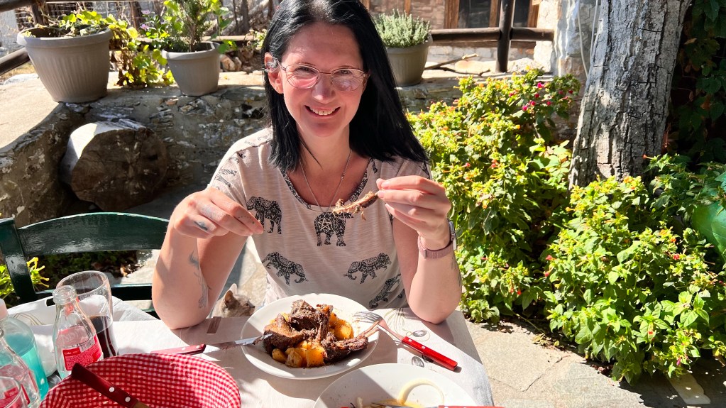 Der Lammbraten wäre nicht jedermanns Geschmack. Viele Knochen waren abzunagen. Geschmeckt hat es aber. Und ein Abendessen brauchten wir auch nicht mehr.