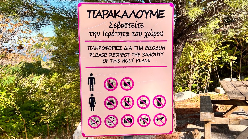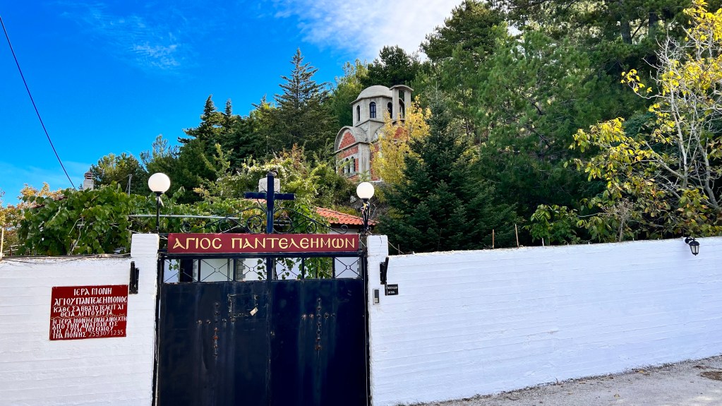 Wir haben echt überlegt ob wir weiter fahren sollen. Schotterstraßen dürfen wir ja nicht fahren aber von zusammengebrochenen Straßen war keine Rede. Also ganz langsam drüber gefahren. Ein Stück weiter war dann noch eine kaputte Stelle. Aber dann ging es und wir kamen gut am Kloster Monastery of Agios Panteleimonas an. (Keine Ahnung ob das richtig geschrieben ist, hab es von Google Maps kopiert) Und es war geschlossen. 😱