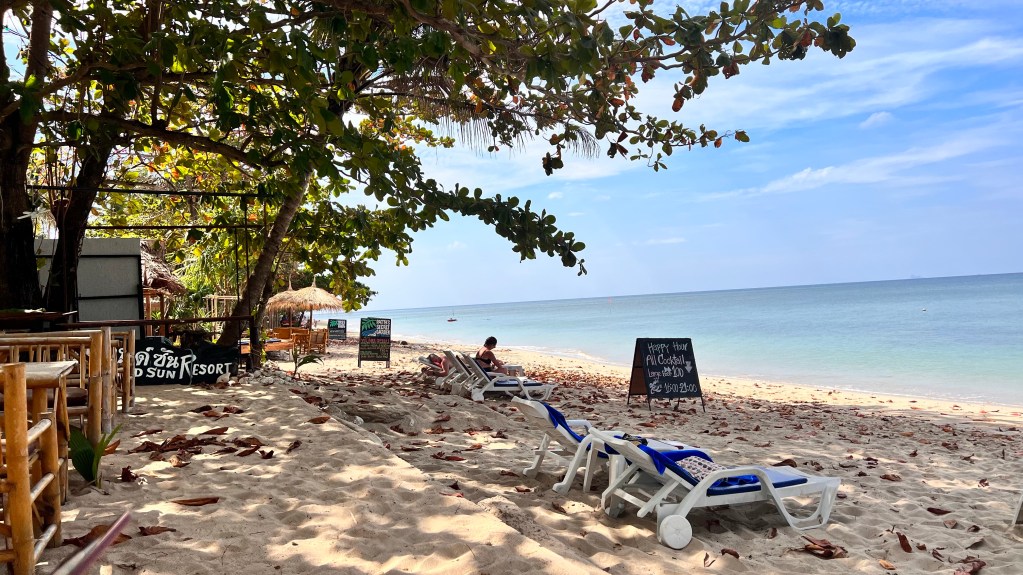 Die fast 3 Jahre Auszeit waren für viele Menschen weltweit nicht gerade angenehm. Auch die thailändische Tourismusindustrie war am Boden. Das merken wir hier. Es wurde wenig an den Bungalows instand gesetzt. Obwohl es auf den ersten Blick gut aussieht, fallen viele Mängel erst auf, wenn man einen Bungalow bewohnt. Die Wasserleitungen sind undicht, die Klimaanlage funktioniert nicht, die Tür hängt schief, die Toilettenspülung will nicht stoppen und die Liegen am Beach, falls überhaupt noch vorhanden, fallen auseinander.