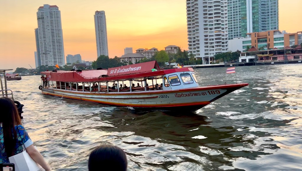 Zurück zur Khaosan Rd. fährt man vom MBK am besten mit der Skytrain zum Sathon Pier und von dort mit dem Express-Boat oder dem Chao Phraya Tourist Boat weiter zum Pier in der Nähe der Khaosan. Man kann beim Kauf des Boot-Ticket sagen, zur Khaosan, man bekommt dann schon das richtige Ticket. Wir haben das kleinere Express-Boat genommen. Das ist authentischer aber vom großen Touristen-Boat sieht man besser und man kann Hop On Hop Off machen. Das Express-Boat kostet immer 16 Baht, egal wie weit man fährt. Auf dieser Strecke fährt man fast alle touristischen Highlights ab, egal welches Boot man nimmt.