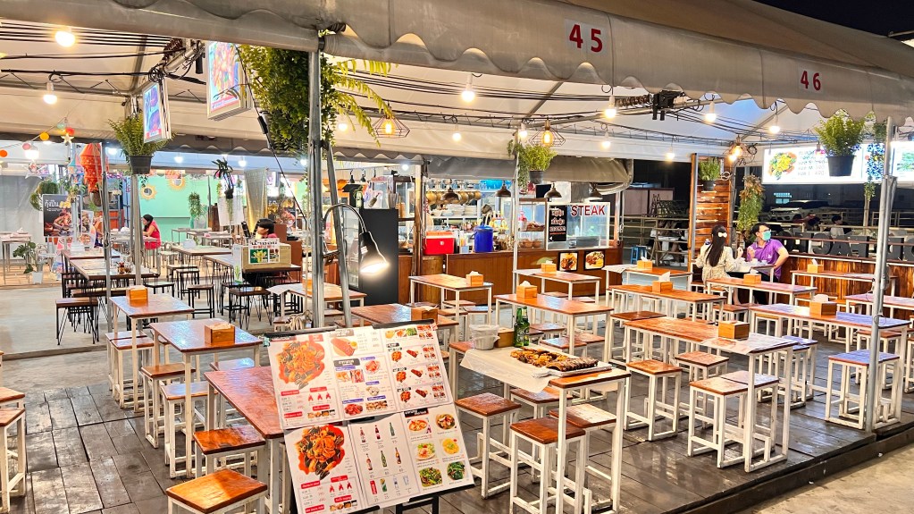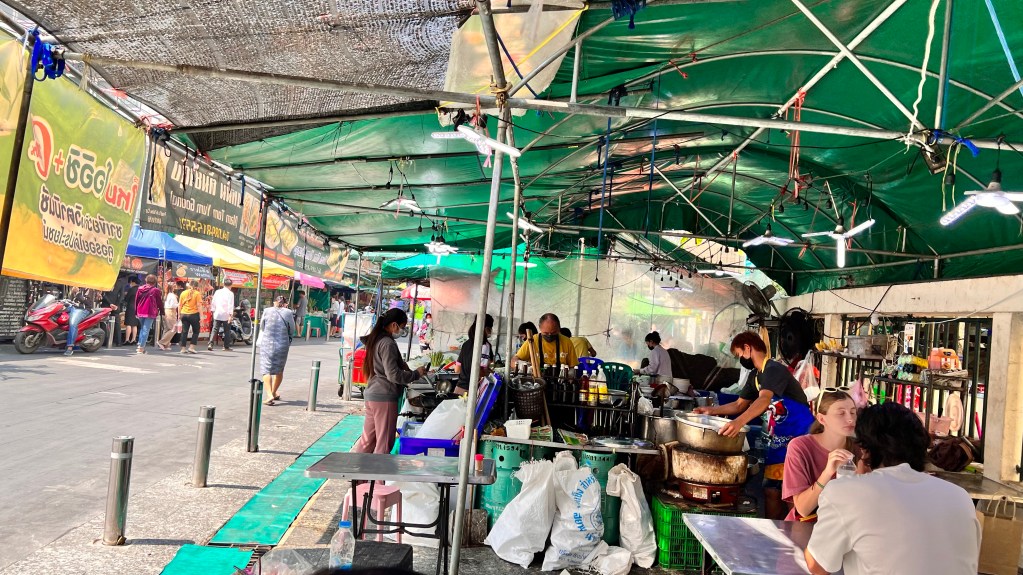 Der Train Night Market Ratchada den wir Anfang 2019 besucht haben gibt es so nicht mehr. Dieser Nachtmarkt war sehr beliebt. Nicht nur wegen dem Essen auch als Fotomotive gab er viel her. Die bunten Dächer von oben fotografiert sah man in jedem Bericht aus Bangkok. Als der Nachtmarkt aus bekannten Gründen geschlossen wurde, wurden alle Verkaufsstände abgerissen. Als ich das gehört habe, lag die Vermutung nahe, dass dort Gebäude gebaut werden sollen. Um so größer war die Freude, als dann an der gleichen Stelle ein neuer Nachtmarkt errichtet wurde. Der neue Name ist The One Ratchada.