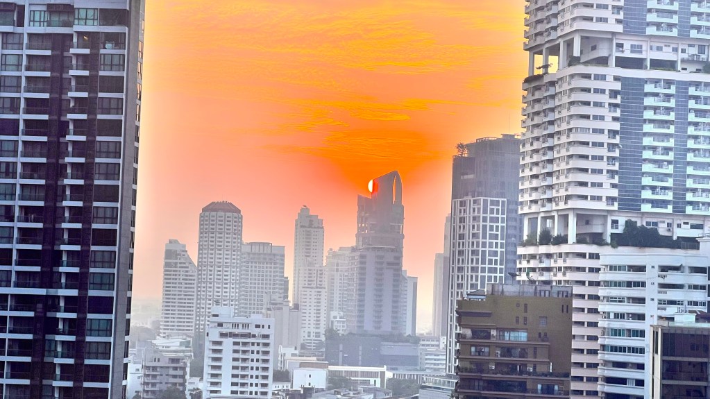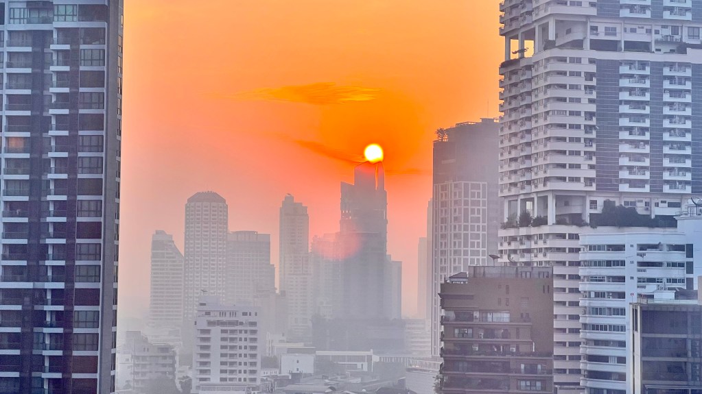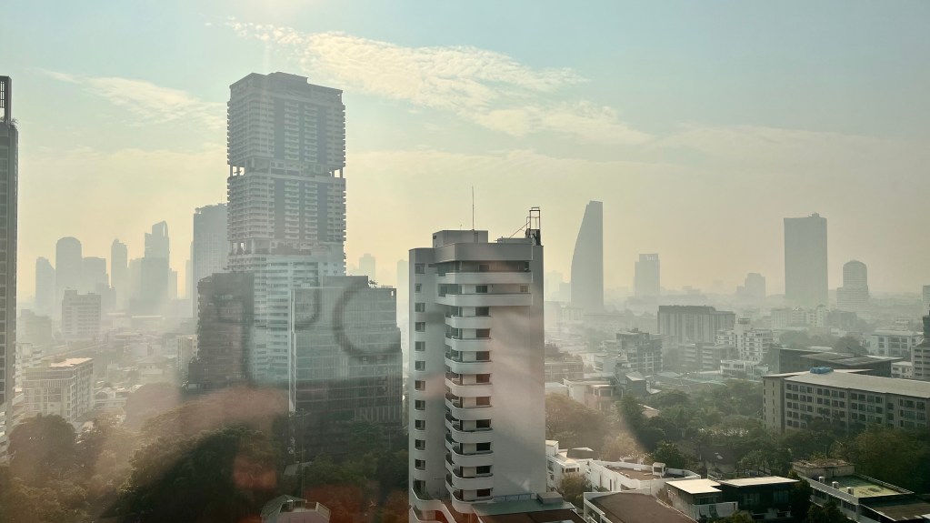 Ein Smokey-Day in Bangkok. Der Blick aus dem Fenster auf das morgendliche Bangkok sah nicht so gut aus.
