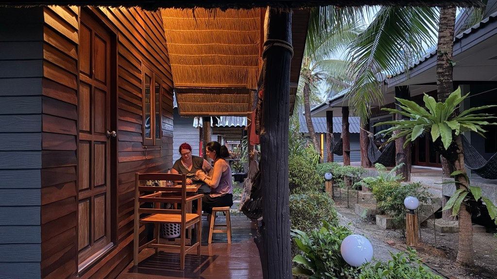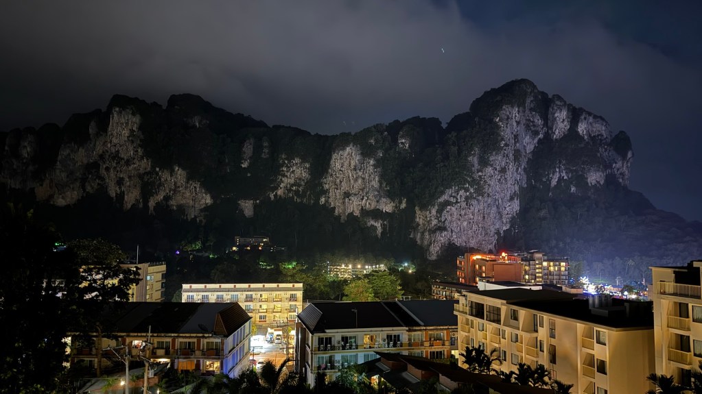 Auch der Abend entwickelte sich anders als gedacht. Zurück vom Abendessen wollten wir noch gemütlich ein Bierchen auf der Terrasse trinken. Aber technische Probleme mit der Toilette zwangen uns die Besitzerin der Anlage zu kontaktieren. Wir konnten nicht in dem Zimmer bleiben und uns wurde der freie Nachbarbungalow angeboten. Den hatten wir aber schon bei Ankunft abgelehnt, weil er etwas gemuffelt hat. Gleichzeitig kam auch ein Gast von der gegenüberliegenden Seite zu uns rüber und meinte, das er auch den Bungalow wechselt wegen Tierchen im Zimmer. Das Mook Ing Lay hat zwar gute Bewertungen scheint aber aktuell ein Problem zu haben. Ich schlug vor, eine Nacht in dem muffligen Bungalow zu bleiben und nächsten Morgen auschecken. Die eine gebuchte Nacht lassen wir verfallen. Wir hatten für den übernächsten Tag ein Transfer nach Ao Nang gebucht. Es war 21.45 Uhr ob ich den Typen, der uns den Transfer vermittelt hat noch erreichen konnte und den Transfer auf den nächsten Morgen ändern konnte? Wenn dann in Thailand. So bin ich schnell zu dem Booking-Menschen hin. Er war da und meinte, dass es kein Problem wäre. Er änderte das Datum auf meinem Voucher und sage „ist geändert“. Scherzkeks hab ich gedacht. Aber er zeigte mir seinen Bildschirm und er änderte dort auch das Datum und meinte das wir morgen früh um 9 Uhr abgeholt werden. So etwas wäre in Deutschland nie möglich gewesen. Und es hat auch super funktioniert.