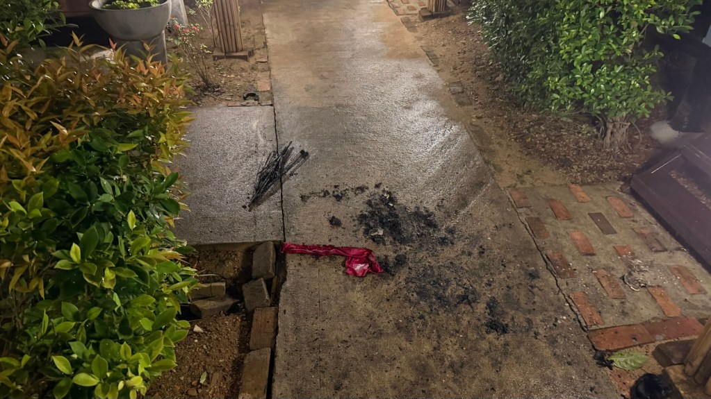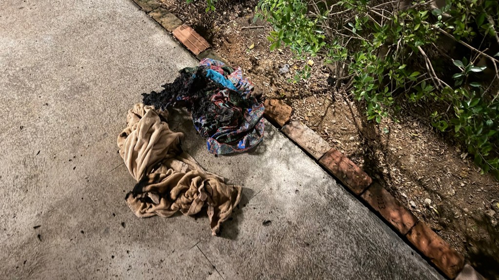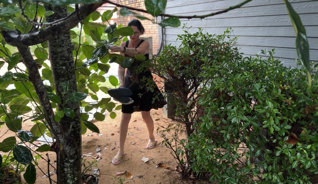 Bekky erkannte den Ernst der Lage und hat sich schnell angezogen. Sie sagte mir, dass ich die Wertsachen und Pässe einpacken sollte und sie rannte rüber zu Sabrina um sie zu wecken. Sie haben zusammen ihre wichtigsten Dinge zusammen gepackt und sind dann auch raus gekommen. Wir standen zwischen den Bungalows und bei unserem Bungalow war nichts auffälliges zu sehen. Bis Sabrina sagte, dass ihre Schuhe nicht mehr da wären. Da viel mir ein, das ich im Halbschlaf, kurz bevor Fire gerufen wurde, ich auch bei uns draußen ein verdächtiges Poltern vernommen habe. Unser Schuhe und Handtücher waren aber noch da. Ich ging durch die Anlage und habe erfahren, das es an mehreren Stellen gleichzeitig gebrannt hat. Jemand hat mir seine verbrannten Sachen gezeigt, die auf der Terrasse hingen. Ein anderer zeigte eine Brandstelle direkt auf seiner Terrasse.