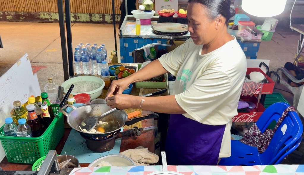 Auch auf dem Nachtmarkt und im Ort Ban Sala Dan ist nichts los. Die vielen Restaurants buhlen um die wenigen Touristen.