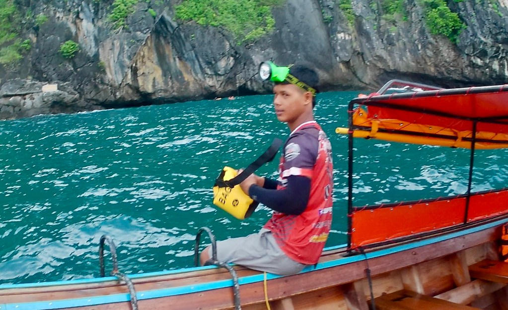 Heute wollten Sabrina und ich was besonderes noch vor dem Frühstück unternehmen. Die Emerald Cave‘s sind bekannt durch ihre kleine Lagune, die nur durch eine im Wasser liegende Höhle zu erreichen ist. Am besten kann man die Höhle bei Ebbe durchschwimmen. Das Problem dabei ist, Ebbe ist zur Mittagszeit in der größten Hitze und da gehen dann Gruppentouren hin. Wir wollten aber nicht mit vielen anderen Menschen dort hin und erst recht nicht in der Mittagshitze. Eine Private Tour kommt uns auch nur 10€ teurer. Die startet um 7 Uhr. Nur Sabrina und ich, der Bootsführer und der Guide, der uns durch die Höhle lotst. Die Fahrt zum anderen Ende der Insel hat circa 15 Minuten gedauert. Das Boot wurde etwa 50 Meter vom Eingang der Höhle geparkt. Der Guide ist zuerst mit einem Rettungsring und einer extra Schwimmweste ins Wasser. Wir hatten keine eigene Schwimmweste. Mir hätte die sowieso nicht gepasst und sie wäre im Nachhinein betrachtet auch kontraproduktiv gewesen. Wir sind bei hohem Wasserstand in die Höhle rein und manchmal war der Abstand zur Höhlendecke nur wenige Zentimeter. Da wären wir mit der Schwimmweste hängen geblieben.