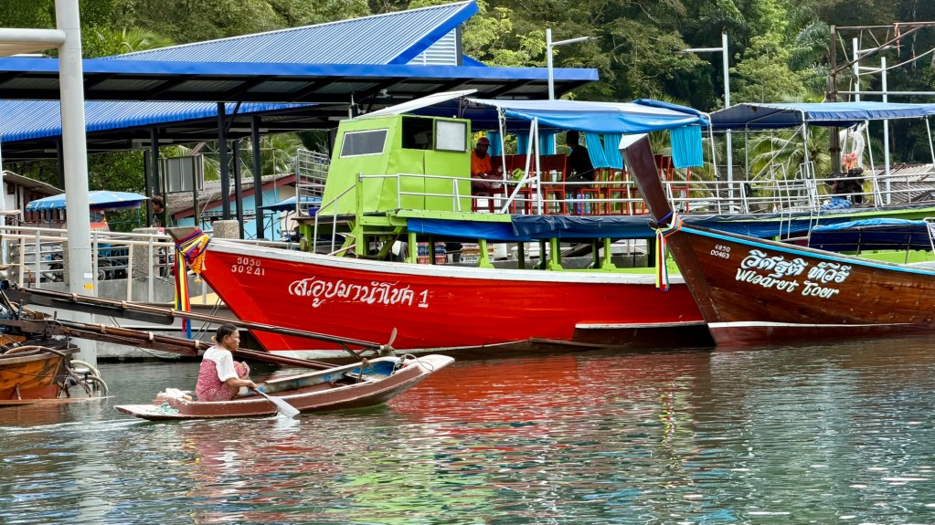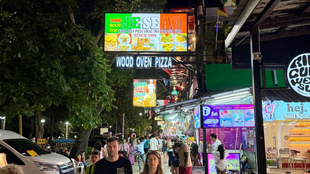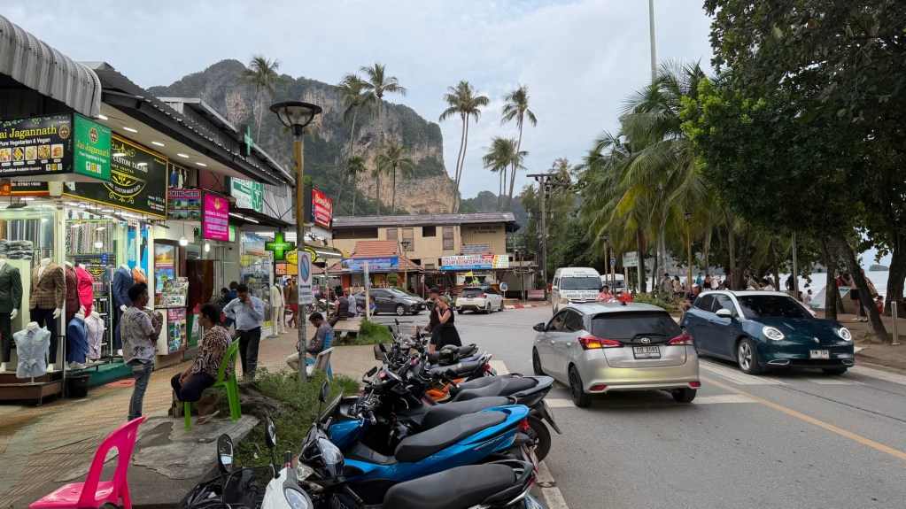 Um 12 Uhr Mittags waren wir in Ao Nang. Seit unserem letzten Aufenthalt, zu Songkran 2018 hat sich hier einiges getan. Wir hatten den Ort nicht ganz so trubelig und voll in Erinnerung. Und jetzt ist erst der Anfang der Season. Indische und russische Leute beherrschen das Straßenbild. Fast jedes zweite Restaurant ist ein Inder. Dadurch kann man nicht mehr in Ruhe durch die Straßen gehen ohne alle paar Meter angesprochen zu werden. Das thailändische Straßenbild ist fast verschwunden. Wo die Thais früher in Ruhe und gemütlich ihren Job nachgingen herrscht jetzt lauter Trubel.