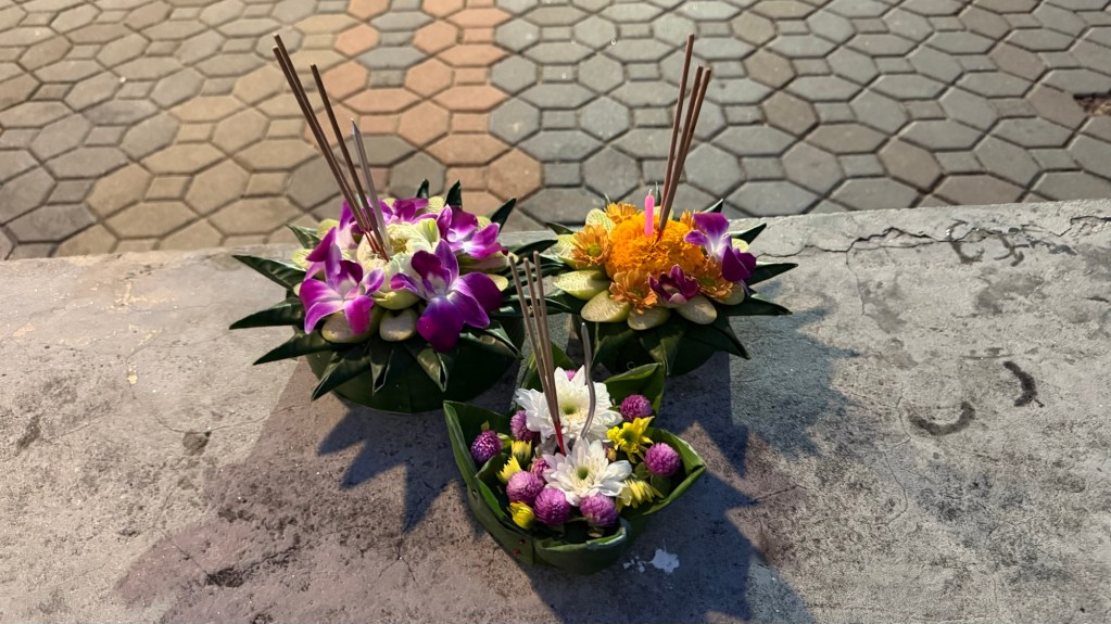 Loy Krathong ist das thailändische Lichterfest, bei dem Menschen kleine, schwimmende Körbchen mit Blumen, Kerzen und Räucherstäbchen auf Flüsse oder Seen setzen, um böse Geister loszulassen und Dankbarkeit zu zeigen.