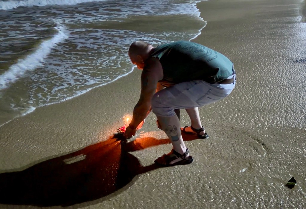 Leider haben wir in Ao Nang keine Flüsse oder Seen, sondern nur das Meer mit Wellengang. Das macht es schwierig bis unmöglich einen Krathong, das Blumenkörbchen, wohlbehalten zum schwimmen zu bringen. Nach wenigen Sekunden kam die Welle und kippte das Körbchen um. Aber wir haben es versucht. Der Wille zählt.