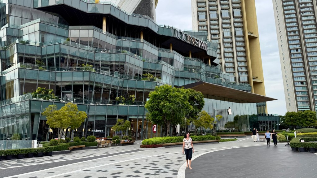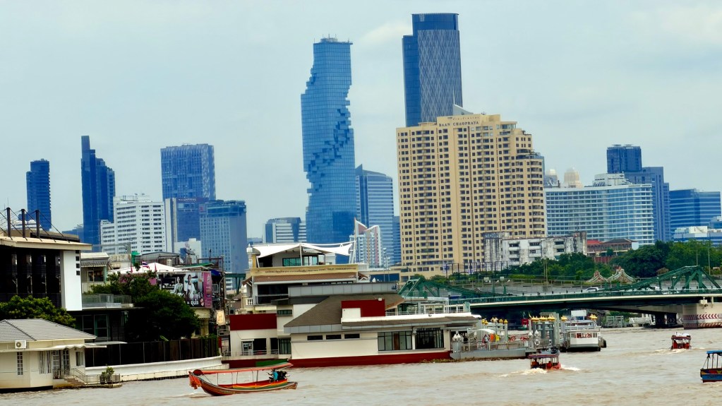 Danach ging es mit der Yellow Linie zum IconSiam. Das Schönste aber wohl überbewerteste Schoppingcenter von Bangkok. Die untere Etage soll ein Streetfoodmarkt darstellen. Es gibt auch unzählige „Garküchen“. Aber nirgendwo einen Platz um das erstandene Essen auch essen zu können. Schön sieht es aus aber praktisch ist es nicht. Zwischen dem G-Level (Food Court) und der 6. Etage liegen die Shopping Etagen. Wer‘s mag. Und in der 6. Etage dann die „bessere“ Gastronomie. Mangels an Sitzplätzen unten, haben wir oben dann was gegessen. Im Inneren des Shoppingcenter’s sind, auf Grund der Größe, kaum brauchbare Fotos zu machen. Der Außenbereich des Icon Siam, mit Blick auf den Chao Phraya ist toll für Fotos auf die Skyline.