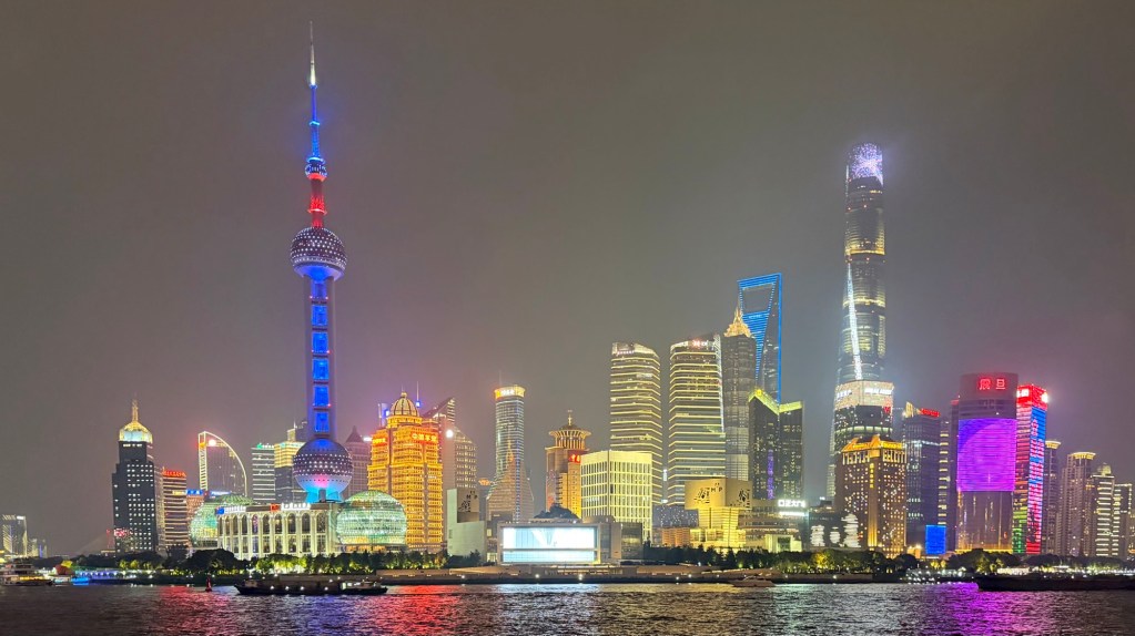 Ein voller Tag Shanghai. Es gibt viel zu entdecken in der kurzen Zeit. Unser Hotel ist nur wenige Minuten vom Bund entfernt. Aber auch die Nanjing Road, die Shopping Meile und Old Street sind in 20 Minuten zu Fuß zu erreichen. Anfangen wollen wir aber mit Pudong, dem Stadtteil auf der anderen Seite des Wassers. Dort wo der Oriental Pearl Tower steht. Es gibt 2 gute Wege von unserem Hotel dem „Atour Hotel Shanghai Bund Nanjing East Road“ aus. Mit dem Bund Sightseeing Tunnel, die Bahn die unter dem Huangpu River drunter fährt und die Fähre, die auf dem Fluss fährt. Wir haben uns für den Hinweg für den Tunnel entschieden und zurück mit der Fähre. Die Bahn durch den Tunnel kostet 11€/Person. Teuer dachten wir zuerst. Aber was für ein Spaß wir hatten, ließ sich da noch nicht erahnen. Beim Ticket Kauf, wurden wir gefragt, ob Weltraum oder Dinosaurier. Haben Saurier gesagt ohne zu wissen was kommt. So sind wir ohne Erwartungen los.