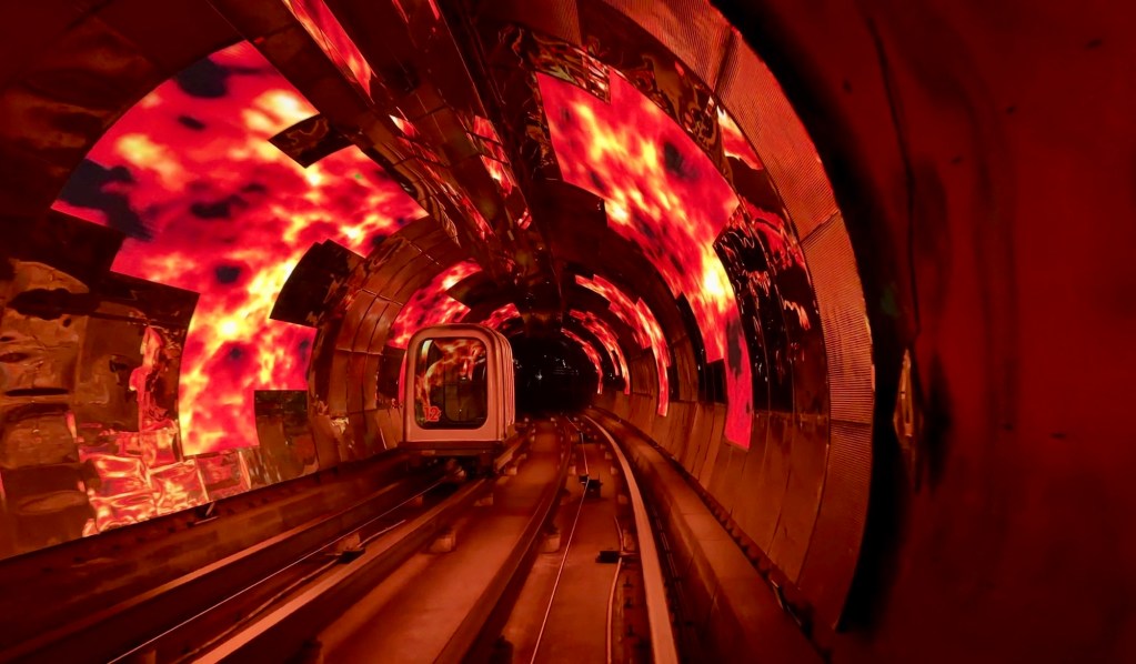Wir waren die einzigen Gäste, die in der Gondel waren. Die Fahrt ging durch einen mit Lichteffekte ausgestatteten Tunnel.