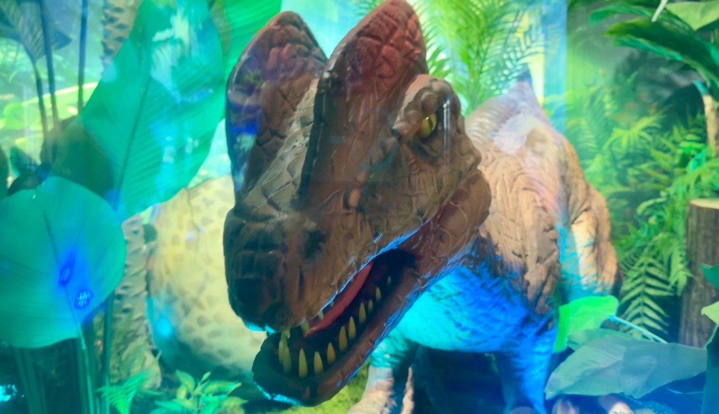 Am anderen Ende nach circa 5 Minuten sind wir auf der anderen Flussseite ausgestiegen. Wir sind eine Treppe hoch und oben angekommen war eine Tür mit Dinosaurier Bilder. Sind da mal rein. Hatten ja Tickets mit Saurier. In drin dann ein paar mechanisch animierte Saurier. OK war ganz nett. Eine Frau führte uns plötzlich in ein Kinosaal, der aussieht wie ein Flugsimulator. Dort lief ein Film über einen Flug, der durch ein Gebiet voller Saurier geht. So viel Spaß hatten wir schon lange nicht mehr. Bin voll auf das Video gespannt. Ich habe die ganze Passage vom Eingang in den Tunnel bis zu den Sauriern mit gefilmt.