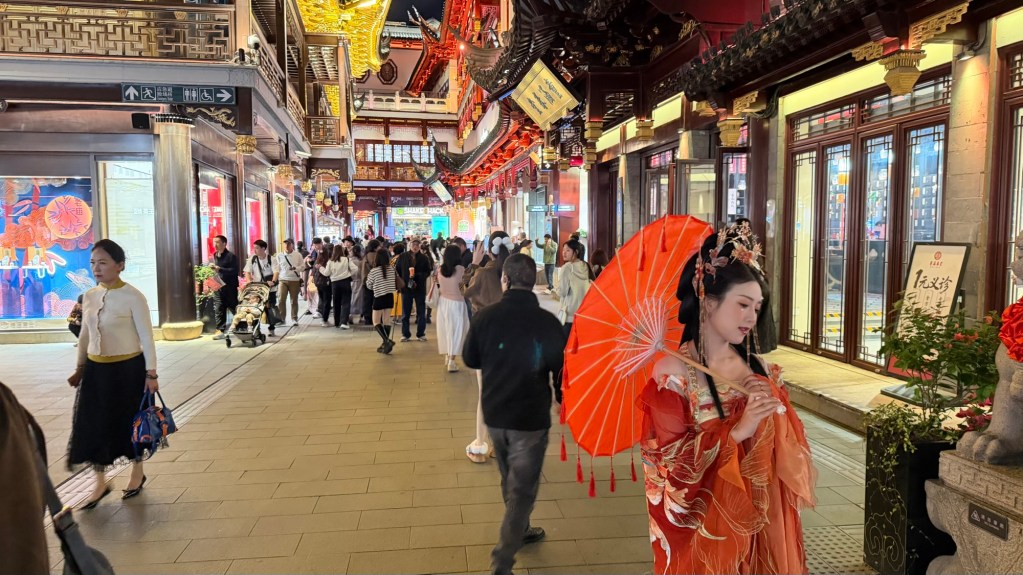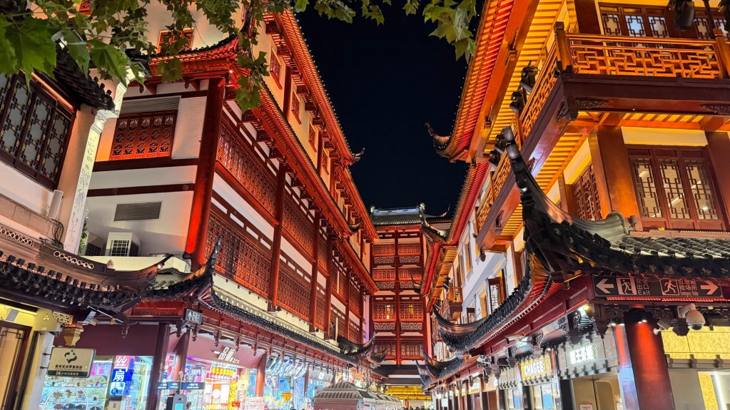 Weil der Yu Garden zu hatte, war etwas Zeit zum die Füße für den abendlichen Gang durch die Old Street zu schonen. Die Old Street ist ein Highlight, besonders wenn es dunkel ist. In der Straße stehen alte chinesische Holzhäuser, die im dunklen, rot angestrahlt werden. Sieht ja auch schön aus.