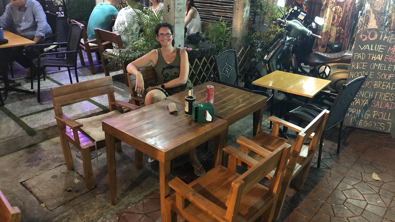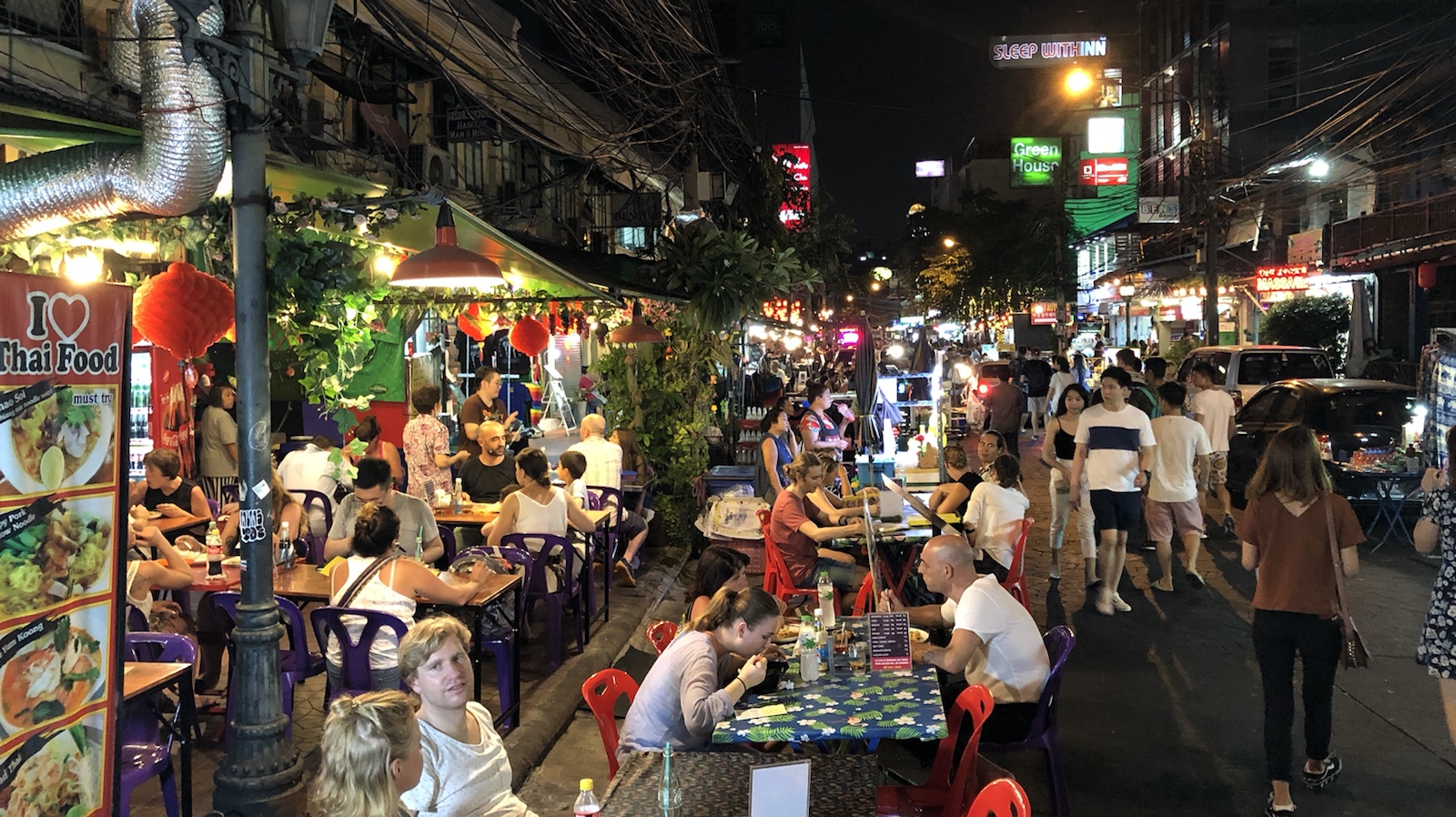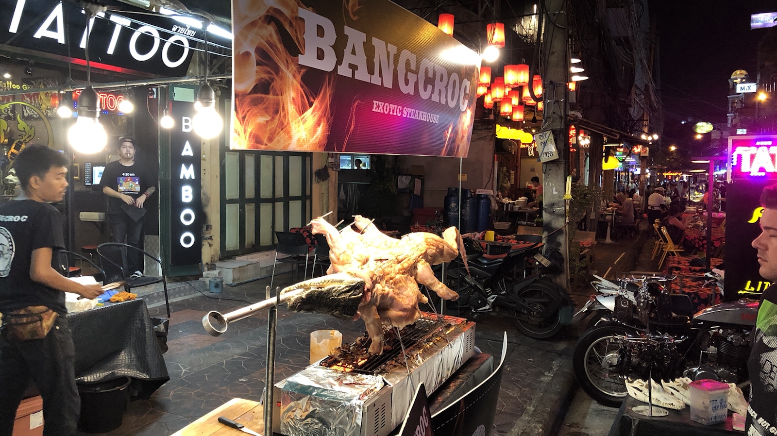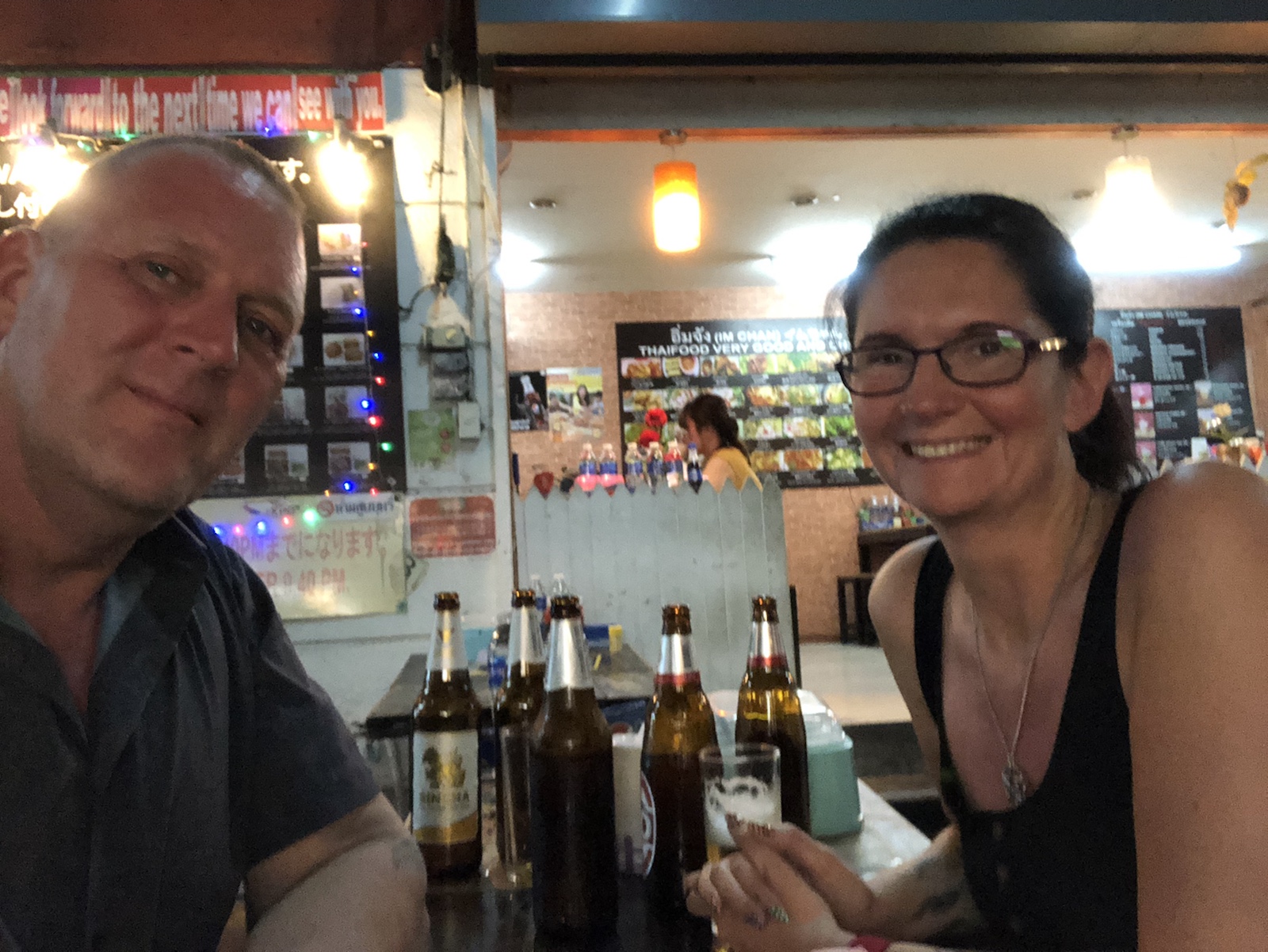 Anschließend was essen und mal checken wie sich die Gegend im letzten Jahr verändert hat. Alles stand noch da, wo wir es letztes Jahr gesehen haben, also auf der Khaosan ein Tisch gesucht, von dem wir das Treiben bei einem Bierchen beobachten konnten. Wer sollte ahnen, das wir uns neben einem kanadischen Pärchen wieder finden, dass das erste mal in Thailand ist und schon ne Menge Bier getrunken hat und alles so toll hier findet. Es war eine sehr lustige Stunde.