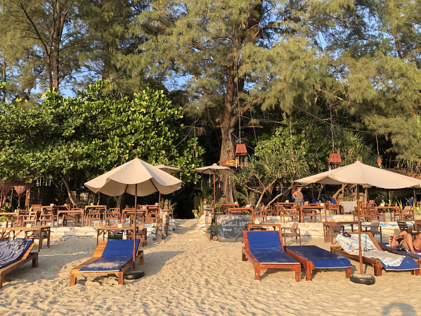 Vor ein paar Jahren hätten wir uns die Frage, über die wir die letzten 2 Tage gegrübelt haben, gar nicht erst gestellt. Wollen wir hier auf der Insel bleiben? Eigentlich ist es richtig toll hier. Geiler Strand, günstige Bungalows und gutes Essen. Aber alles sehr Basic. Aber ist das nicht das was wir wollten? Eigentlich schon. So haben wir uns entschlossen hier an dem Strand zu bleiben. Morgen wechseln wir für 3 Tage die andere Bungalowanlage, weil hier alles ausgebucht ist. Aber am Montag kommen wir wieder zurück. Das JJ Bungalow können wir nur empfehlen. Sehr nette Leute, gutes Essen und günstiges Bier.