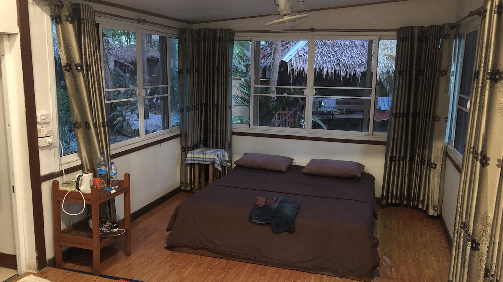 Wir sind für 3 Tage ins Aow Yai Bungalows gezogen. Die Bungis haben Klimaanlage und kosten deshalb ne Menge Geld. 75€/ Nacht müssen wir zahlen. Auf dem Festland zahlt man dafür nur die Hälfte. Aber schön ist er schon und in top Lage. Nur leider ohne Safe und die Matratze ist bretthart.