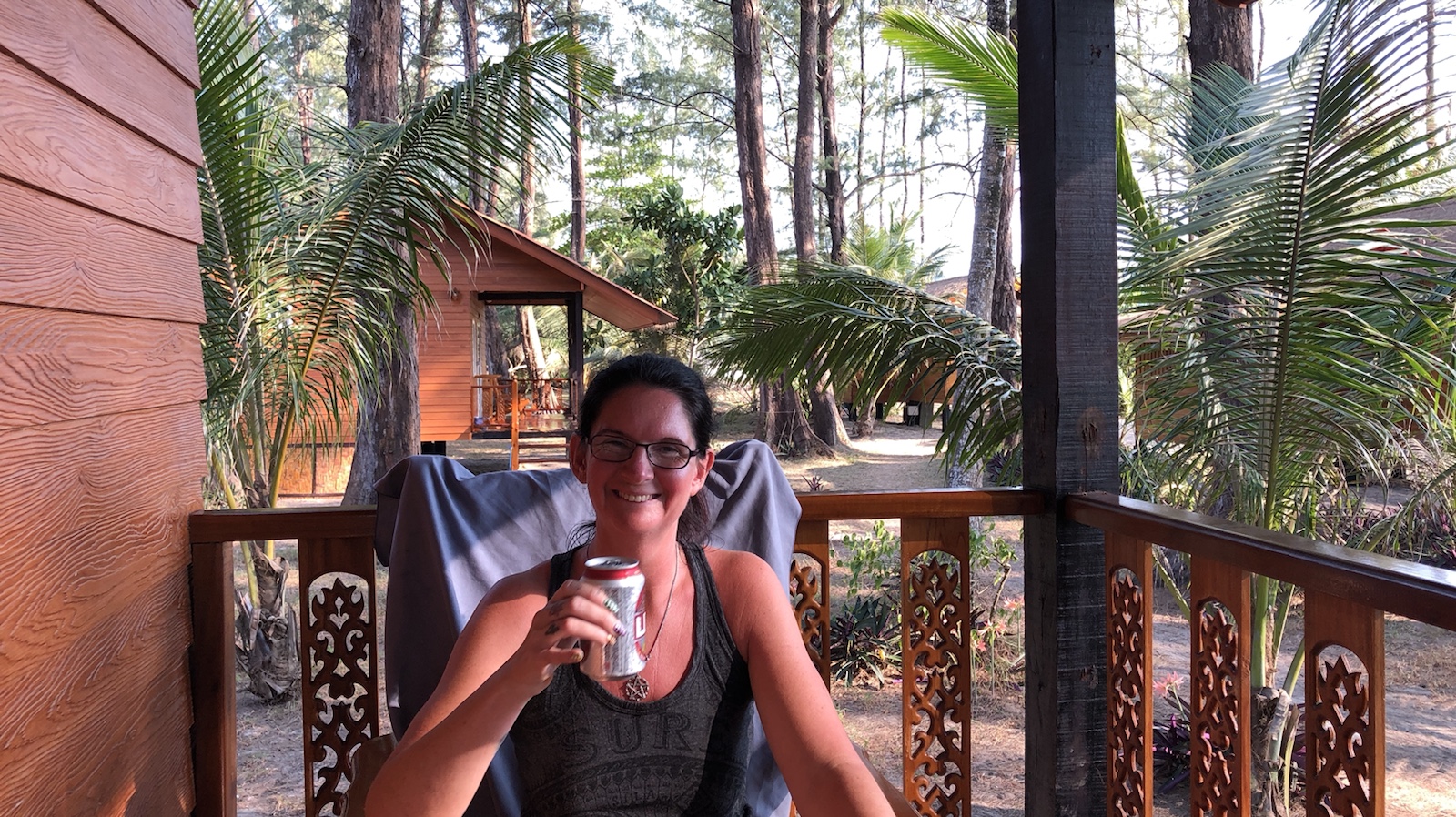 Wir haben überlegt, wieder die Insel zu verlassen. Aber der Strand hier ist echt super. Also in den sauren Apfel gebissen und einen doppelt so teuren Bungalow im Nachbar-Resort gebucht. Der hat aber Klimaanlage und Kühlschrank.