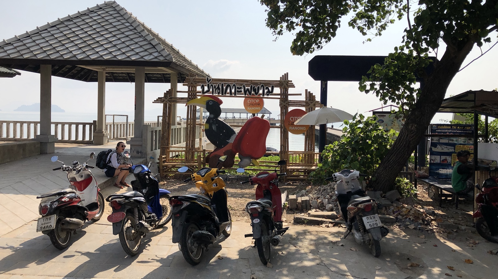 Und mir sollte hier auf einer kleinen Insel in Thailand, an der Grenze zu Myanmar das gleiche passieren? Schien so, weil der Hund, wollte nicht absteigen. Ich wollte ihn runter schieben, ging aber nicht. Also bin ich langsam los gefahren. Vielleicht wollte er ja nur bis zur nächsten Ecke mit. Leider auch nicht. Also weiter gefahren. Der Hund schien das öfter zu machen, denn er konnte sich gut halten. Um so weiter wir fuhren, um so mehr hatte ich ein Problem. Weil die Hunde der Häuser an denen ich vorbei fuhren hatten alle ihr Revier und duldeten keine andere Hunde. Und ich fuhr mit einem fremden Hund durch viele Reviere. Nach kurzer Zeit liefen viele Hunde bellend und knurrend neben mir her. Zum Glück war die Abgabestation für das Moped nicht weit. Dort angekommen, kamen 3 weitere Hunde dazu. Das Mädel, die dort arbeitete schaute nur kurz von ihr Smartphone hoch. Es interessierte sie nicht, das ich von mehreren bellenden Hunden umgeben war. Passierte es hier Öffners? Mein Hund jedenfalls ist, als er mitbekommen hat, dass die Fahrt zu Ende ist, abgestiegen und von dannen gezogen. Es schien so, als ob die Hunde es zum Spaß machen. Wir werden es wohl nie erfahren.
